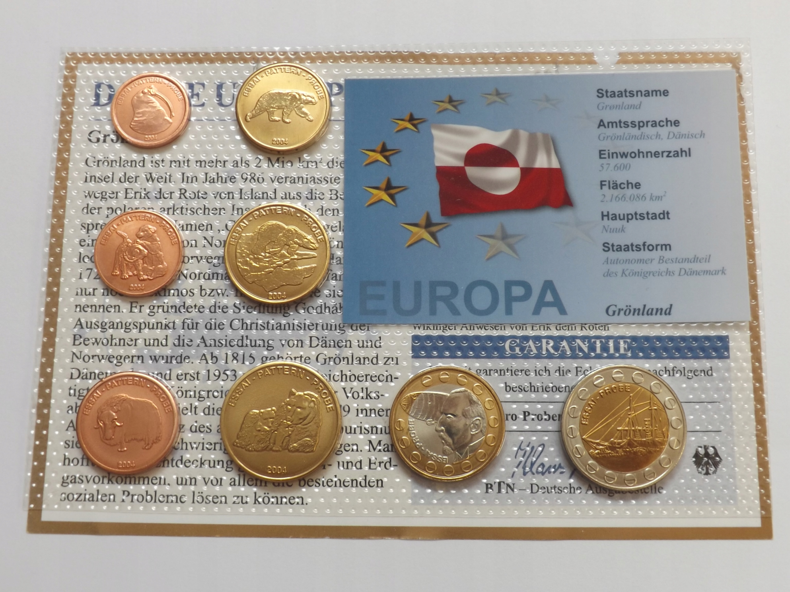 Гренландія 2004 Набір монет Euro Proof, сертифікат 8 x UNC