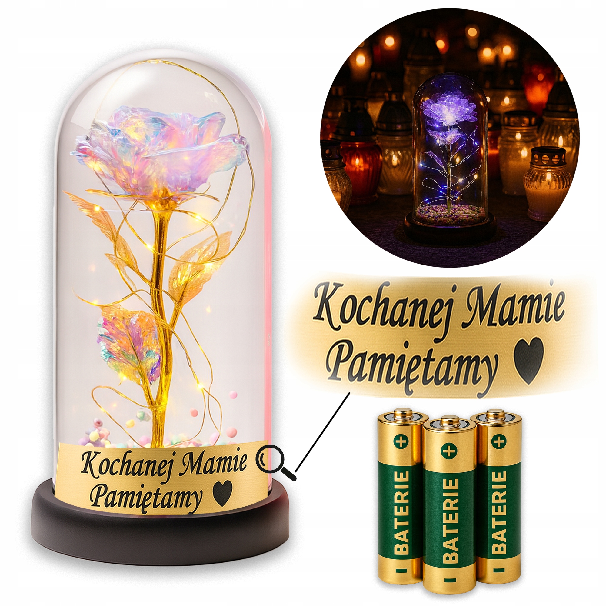 Пропонуємо унікальну Вічну троянду у склі - елегантну свічку з квіткою та LED підсвічування. Він не в'яне, не потребує догляду, а його тепле сяйво створює атмосферу пам'яті та любові. Ідеально підходить на могилу близької людини або як символічний подарунок.