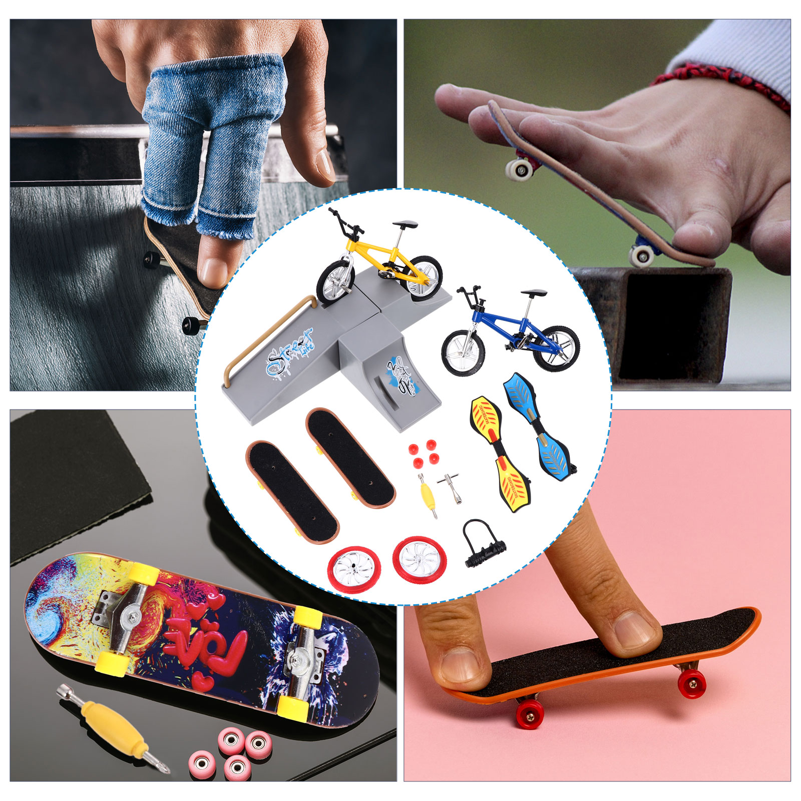 - Пальчиковий скейтбординг – це новий модний і розважальний проект, пов’язаний зі спортом. Скейтборд-парк гладкий і безпечний, що робить його веселою іграшкою. Унікальний подарунок для дітей, яким сподобається цей новий пальчиковий скейтборд. Чудовий подарунок для любителів спорту та любителів скейтборду, їм сподобається цей набір для скейт-парку.