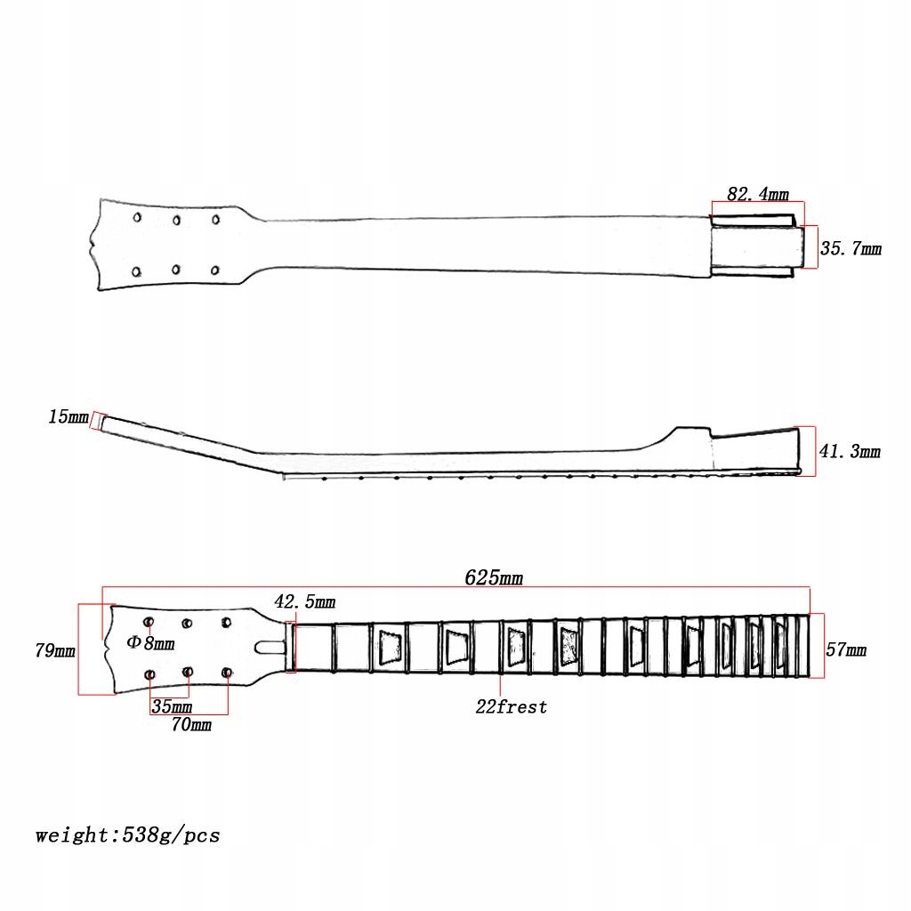 Призначений для заміни грифа електрогітари LP з натуральним покриттям і білою трапецієподібною вставкою.
