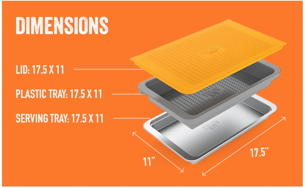 - У вас повинно бути барбекю - більше немісячних замовлень 9 "х 13" фольги для всіх сеансів барбекю. Патент на славу Юкон, що очікує на підготовку, подає пластиковий піднос для сирої їжі з красивим лотком для подачі нержавіючої сталі до вареної їжі та оснащена помаранчева кришка, яка відповідає обом лоткам, ідеально підходить для маринадів або залишків