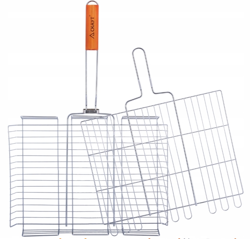 Подвійна решітка з дерев'яною ручкою ідеально підходить для смаження на грилі шматочків м'яса, ніжної риби, овочів та інших продуктів, які ви хочете.