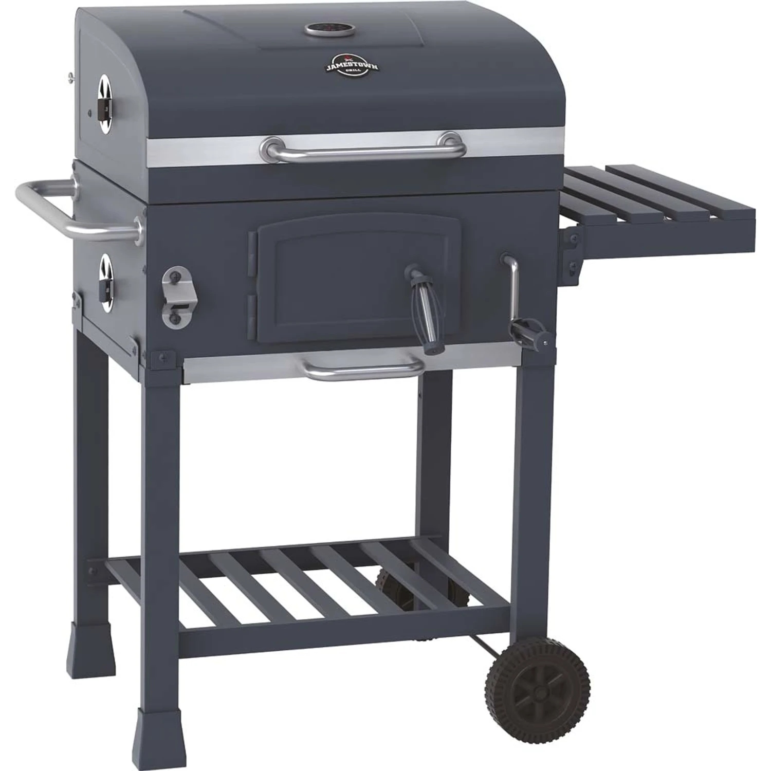 Jaxon charcoal grill by Jamestown забезпечить неповторний смак стейків, гамбургерів, риби та овочів. За допомогою гриля на вугіллі можна приготувати ароматні, соковиті страви. Прямокутний простий у використанні гриль ідеально підходить для вечірок у саду з родиною та друзями.
