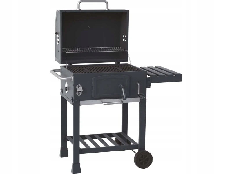 Вугільний гриль Jaxon пропонує багато варіантів зберігання посуду для гриля на нижній і бічних полицях. Бічна полиця складається, що дозволить заощадити місце при зберіганні мангала. 2 колеса роблять пристрій мобільним. Ви можете легко розмістити їх у саду чи на терасі, а також транспортувати в будь-яке інше місце, де ви хочете насолодитися смаком страв, приготованих на грилі. Ще одна перевага гриля - відкривачка для пляшок. Цей нестандартний пристрій для грилів ідеально підходить для спекотних днів і тривалих світських посиденьок.