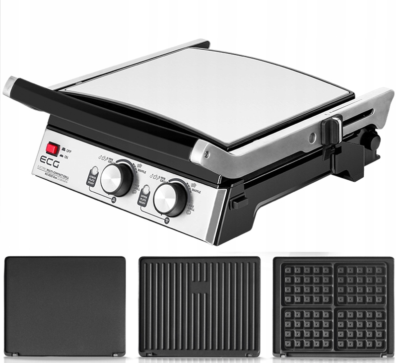 - ECG KG 2033 Duo Grill & Waffle — справді універсальний кухонний помічник. Є багато різних способів використання плит для гриля, покритих високоякісним тефлоновим антипригарним покриттям. Пристрій має регульовану висоту верхньої панелі.