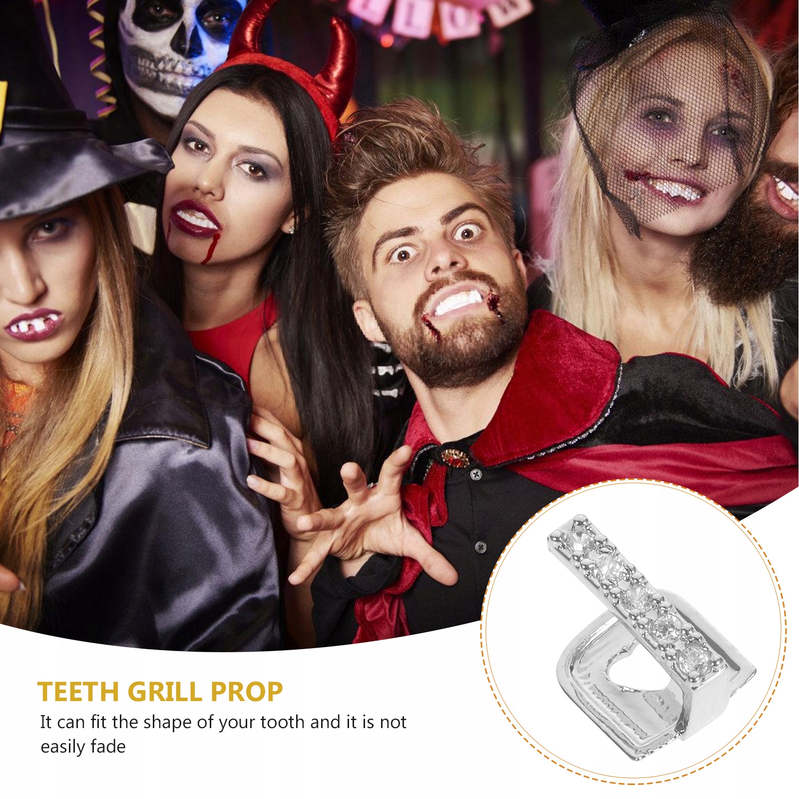 ✅, проведений з міцних матеріалів, цей гриль для зубів є безпечним і практичним для носіння, він може бути багаторазовим і тривалий час користуватися протягом тривалого часу. Гриль на губах добре носити на Хеллоуїнських заходах, косплей або сценічних виступах. Світлий колір, невеликий розмір, простий у використанні, декоративний гриль для зубів може бути подарунком для членів сім'ї чи друзів, які люблять культуру хіп-хопу.