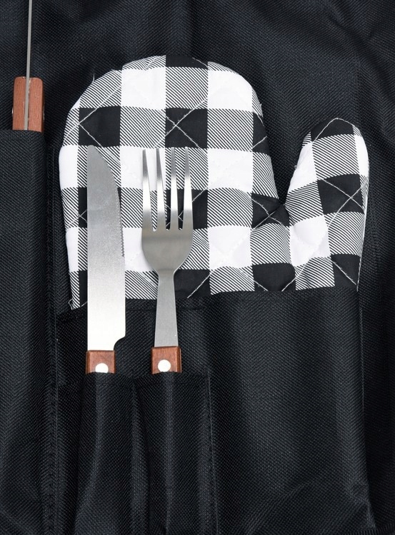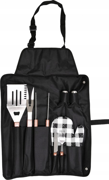 Основний набір для всіх любителів барбекю. У спеціально розробленому фартуху на посуду завжди під рукою, а під час зберігання фартух служить обкладинкою .