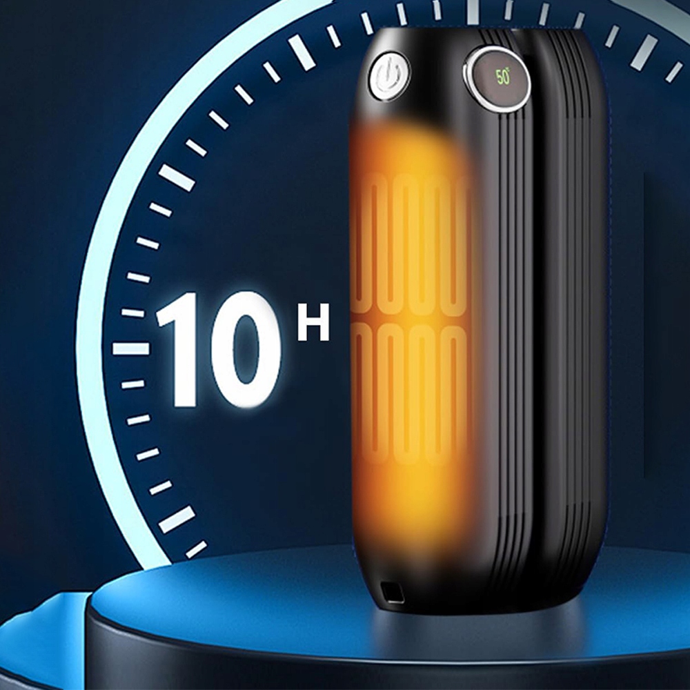 Наша інноваційна грілка для рук використовує високоефективну нагрівальна панель і алюмінієвий сплав із високою теплопровідністю — це гарантує досягнення заданої температури лише за 2 секунди! 🌡️ Електронний дисплей завжди показує поточну температуру. Корпус з міцного АБС більш екологічний і служить довше одноразових обігрівачів. ♻️