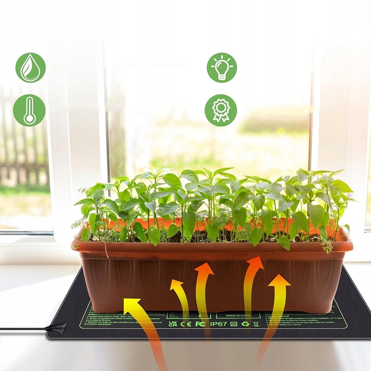 Грілка підходить для багатьох застосувань, таких як пророщування насіння, розсадник, бродіння пива, пивоварня, бродіння дріжджів для тіста, розведення квітів і рослин, просування насіння проростання та ріст рослин, що робить його ідеальним вибором для ваших рослин і культивованих ферментованих продуктів.