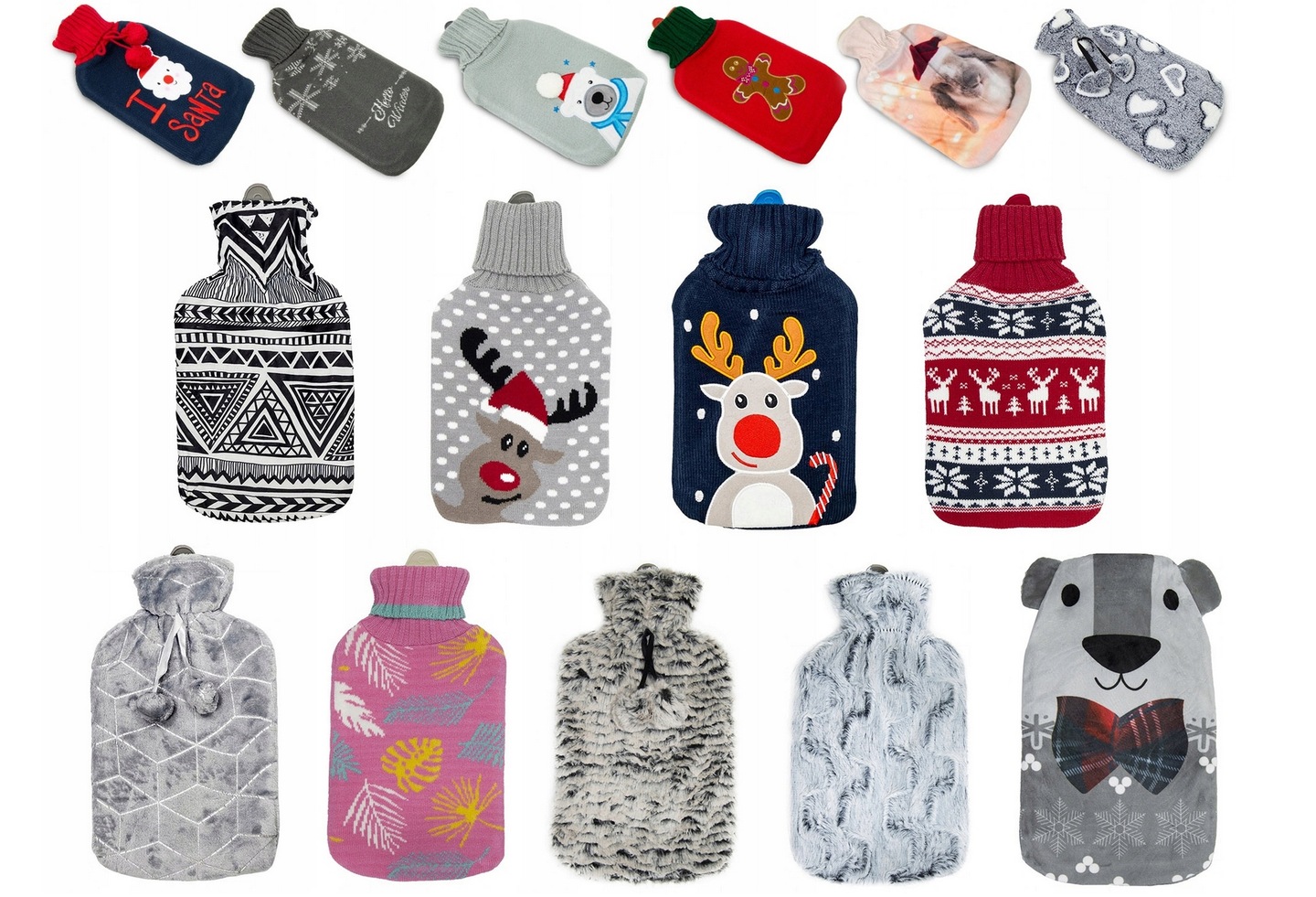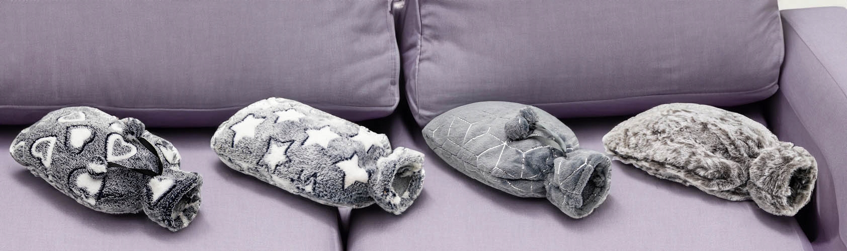 - пляшка з гарячою водою з сірим плюшевим хутром. b>