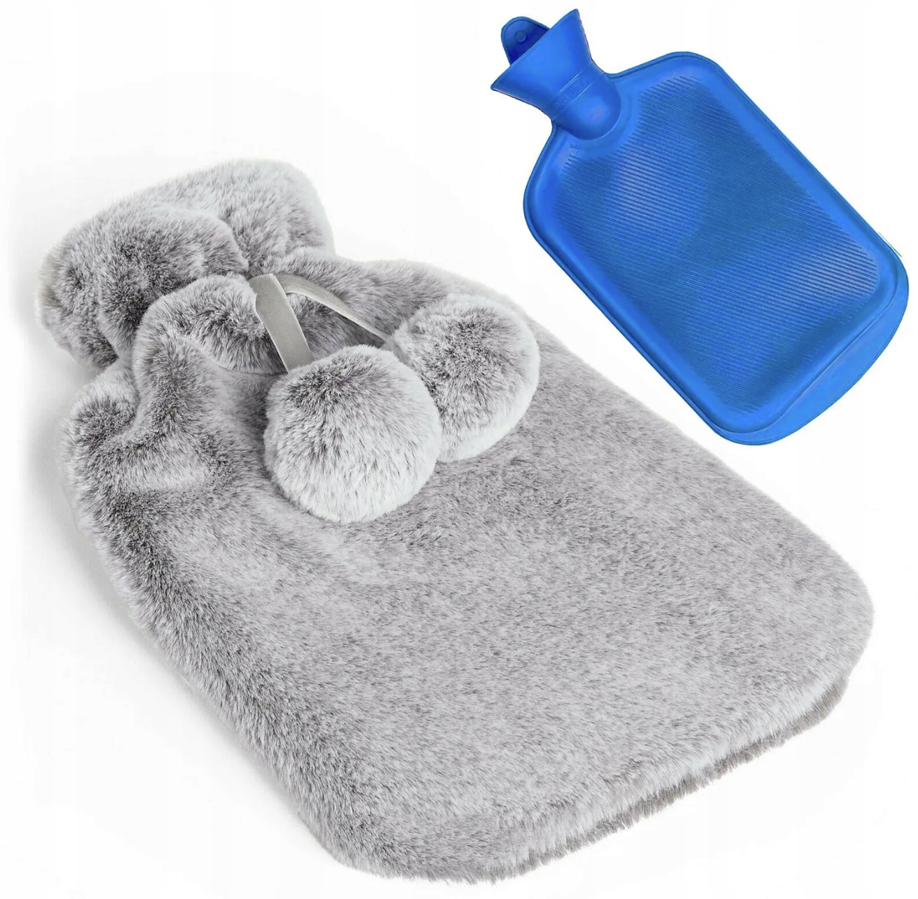 Гумова грілка з кришкою з м'якого плюшу різних кольорів.