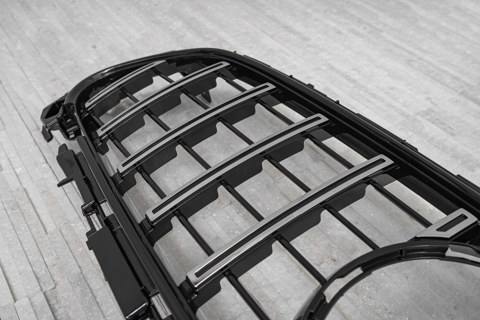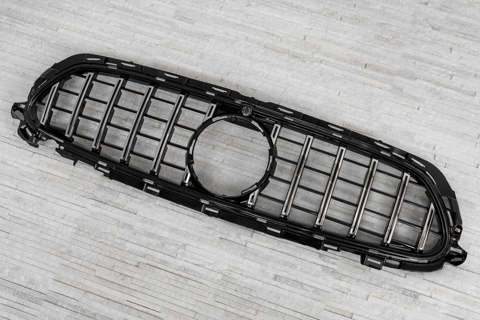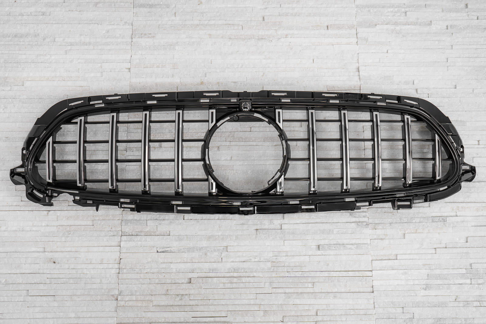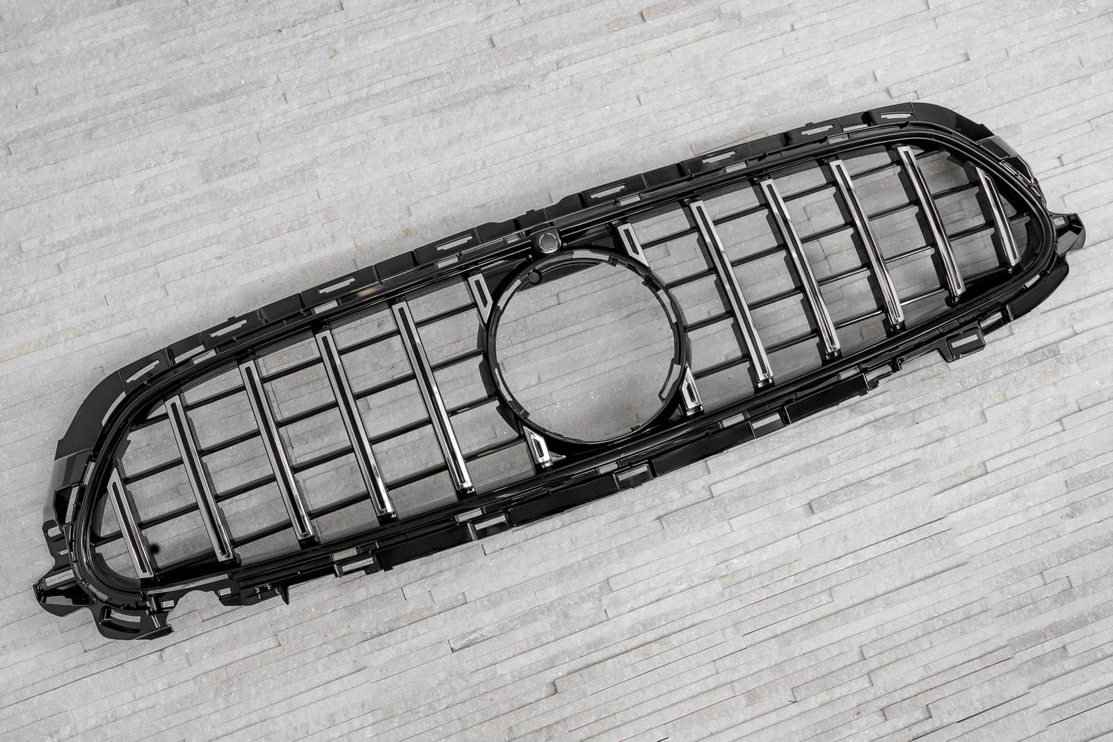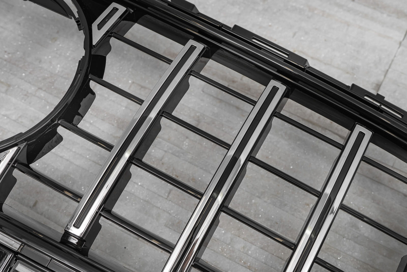 Спеціальна решітка розроблена в стилі, типовому для автомобілів сегменту GT. Решітка радіатора прикрашена широкими хромованими поперечинами, які неминуче нагадують про респектабельні, потужні автомобілі топ-полиці. Елемент вражає своїм спортивним характером, а глянець хромованих елементів додає елегантності - завдяки чому він ідеально поєднується з вражаючим дизайном Mercedes.