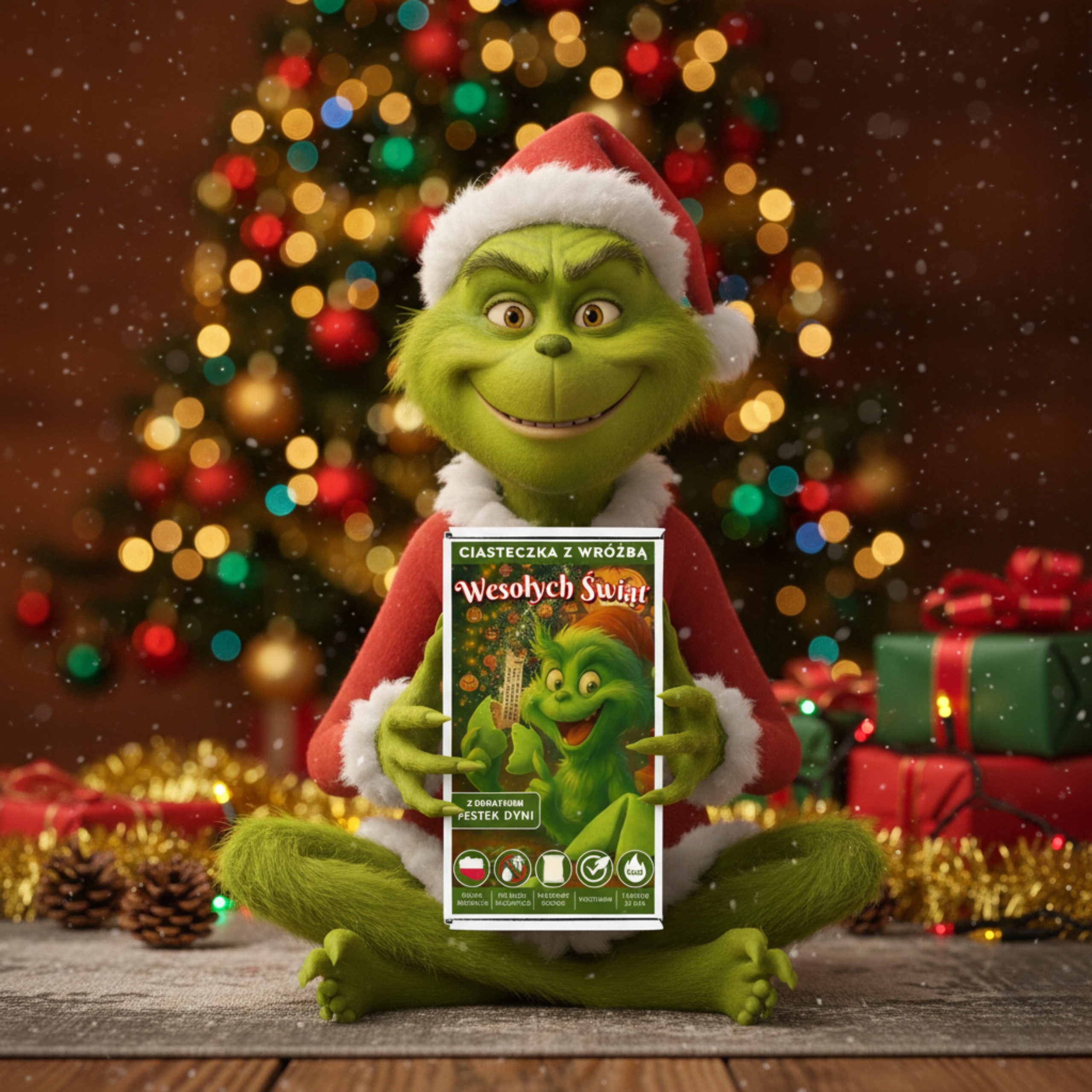 Уявіть різдвяний вечір — ялинка, подарунки, сміх, магія зими. І раптом... кожен отримує зелене печиво з передбаченнями у виданні GRINCH.