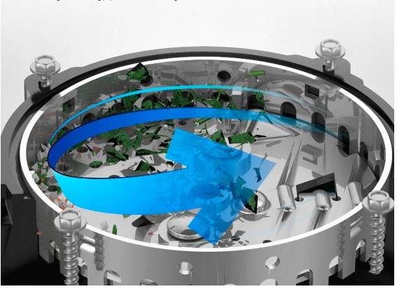 Ми використовуємо сучасну систему різання без лез, яка забезпечує швидке та багаторазове нарізання їжі. Завдяки цьому ви можете бути впевнені в точному фільтруванні залишків їжі.