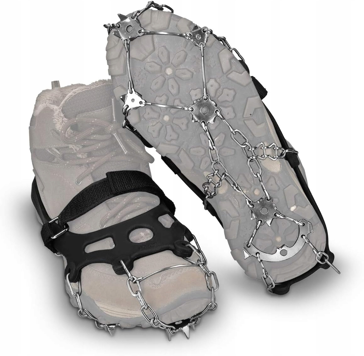 - Увімкнути та вимкнути - завдяки гнучкому дизайну захист від ковзання можна легко прикріпити до вашого взуття - на гірські черевики, жіноче взуття або навіть під час бігу. Працює як ланцюг протиковзання для автомобільних шин!