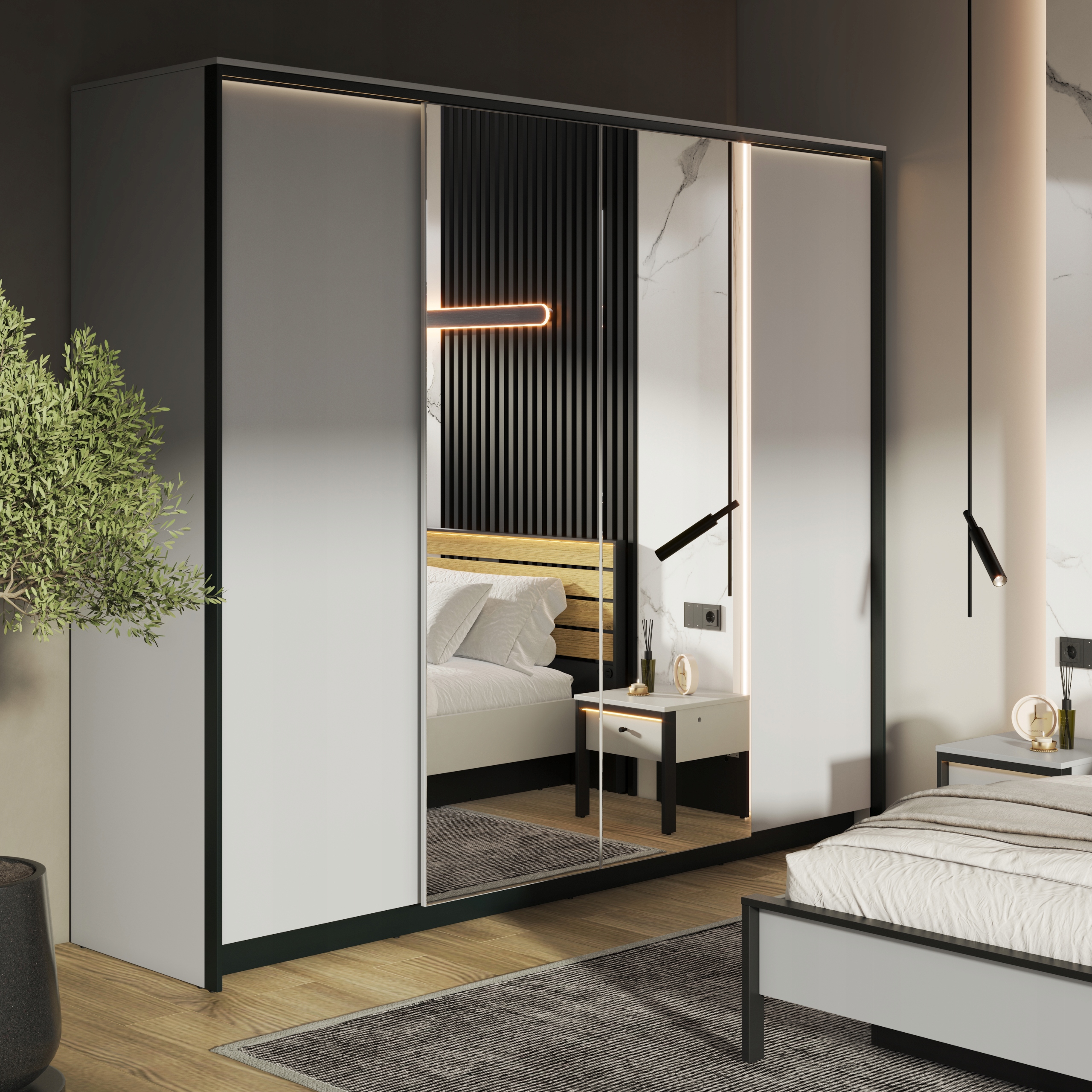 - Шафа чотиридверна з дзеркалом і підсвічуванням GRIS GS-01