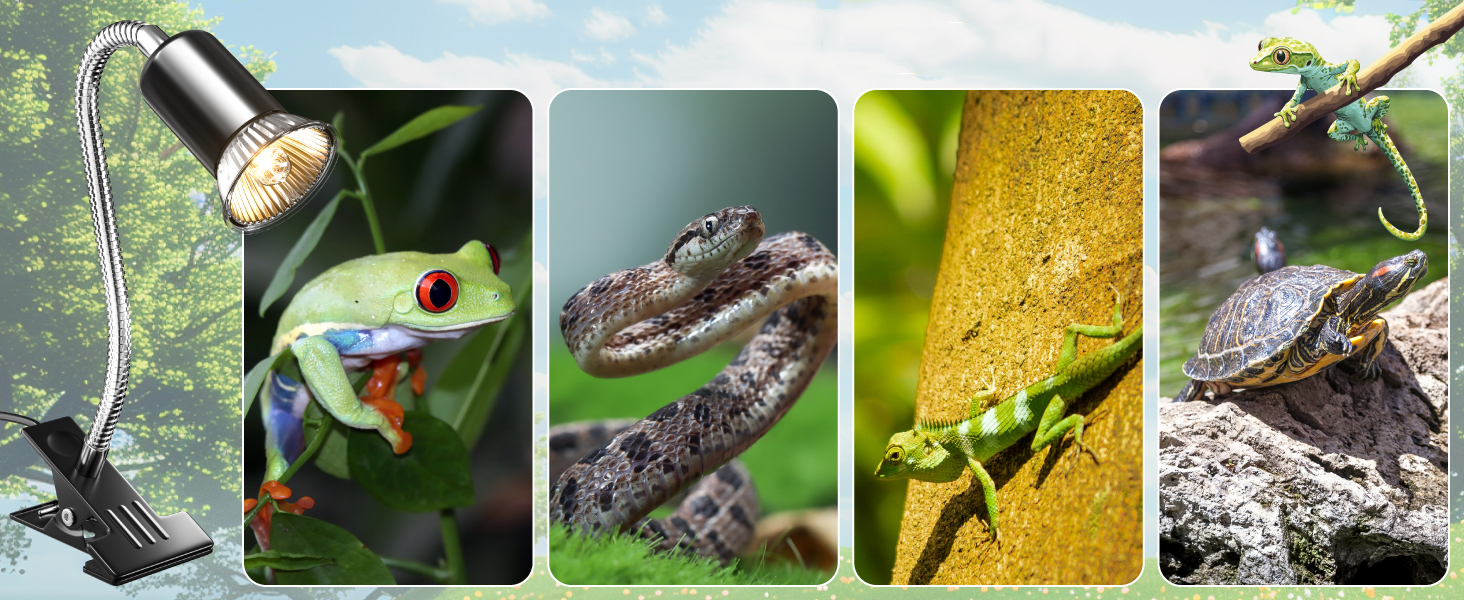 🦎Стандартний цоколь E27, підходить для всіх стандартних нагрівальних ламп E27; Підходить для всіх видів рептилій і амфібій, включаючи черепах, ящірок, змій, жаб тощо.