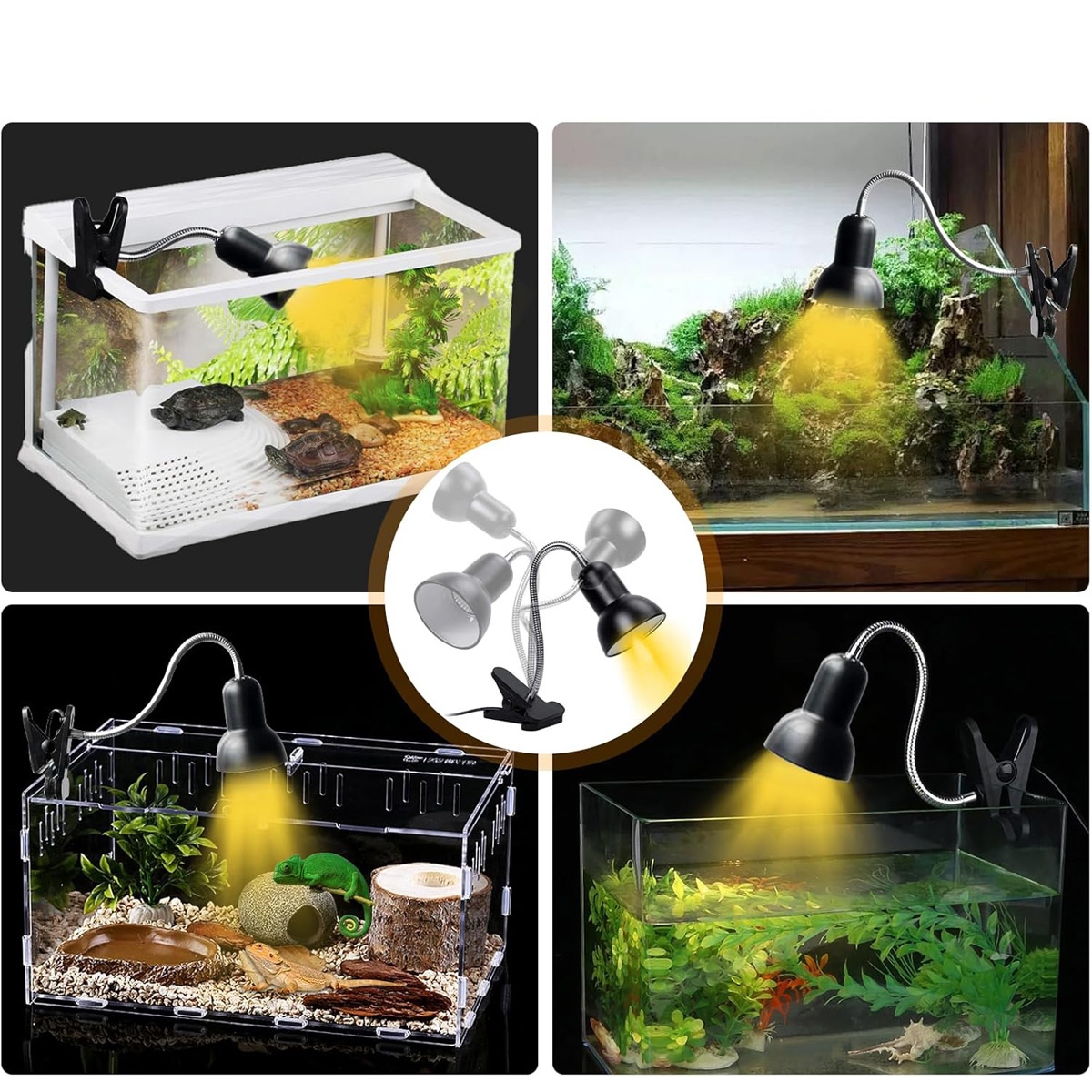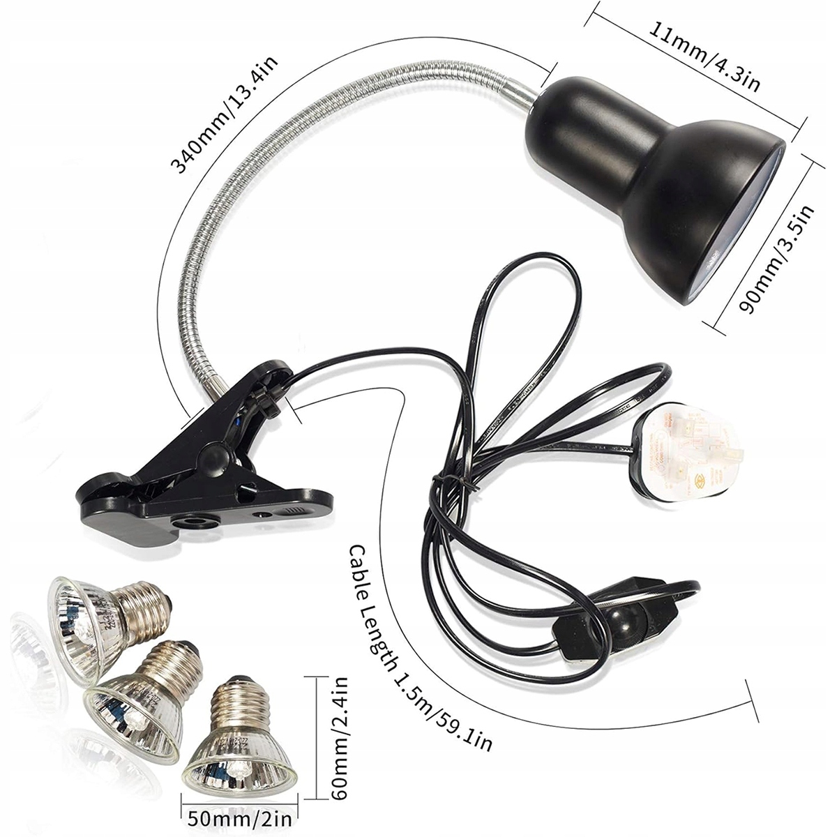 ЗМІННІ ЛАМПОЧКИ E27: 1 x 25 Вт + 2 x 50 Вт для рептилій (3 нагрівальні лампи), UVA (видиме світло) світло (UVB світло (вироблення вітамінів)) і тепло. Лампа для рептилій використовує процес покриття для антиоксидантних і вибухозахищених властивостей і використовує скляну вакуумну трубку, щоб подовжити термін служби лампи.