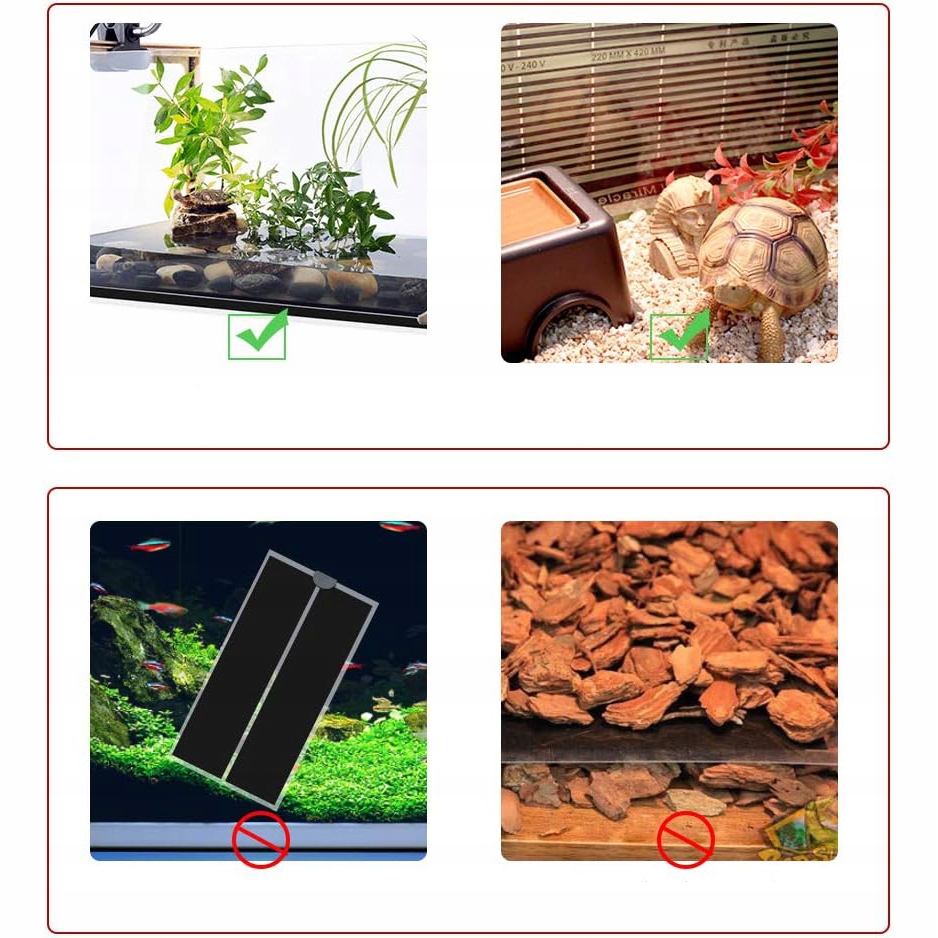 💎💎РОЗМІЩЕНИЙ, БЕЗ КЛЕЮ - Нагрівач для ванни без клейкого паперу. Його можна використовувати всередині або під баком, залежно від вашого бажання або для зміни бака. Вам не доведеться турбуватися про те, що ваш танк буде знищено палицею. Примітка. Не накривайте грілку предметами, які не проводять тепло, наприклад деревною стружкою, кокосовою землею та пуховими рушниками.