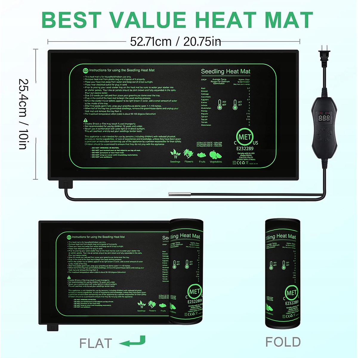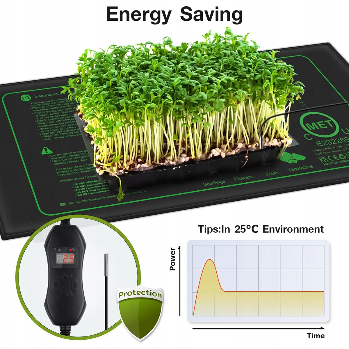 Наш нагрівальний килимок оснащений вдосконаленим термостатом, який дозволяє точно встановлювати температуру в діапазоні від 20 ℃ до 45 ℃. Завдяки цьому ви можете регулювати тепло відповідно до конкретних потреб ваших рослин на різних фазах росту.