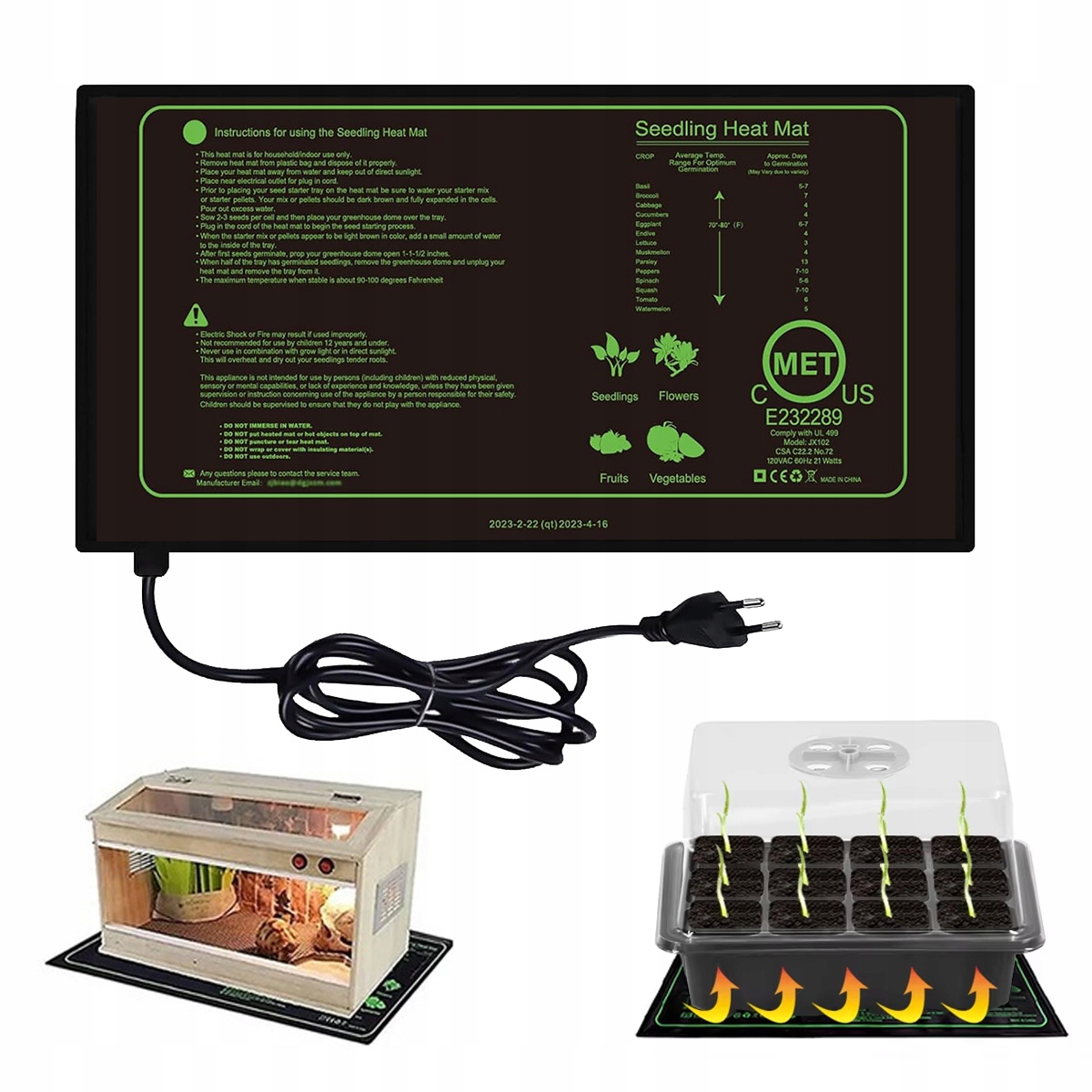 【Простий у використанні】 килимок для теплиць, горщиків або ящиків для вирощування дуже простий у використанні джерела живлення та розміщення на ньому теплиці!