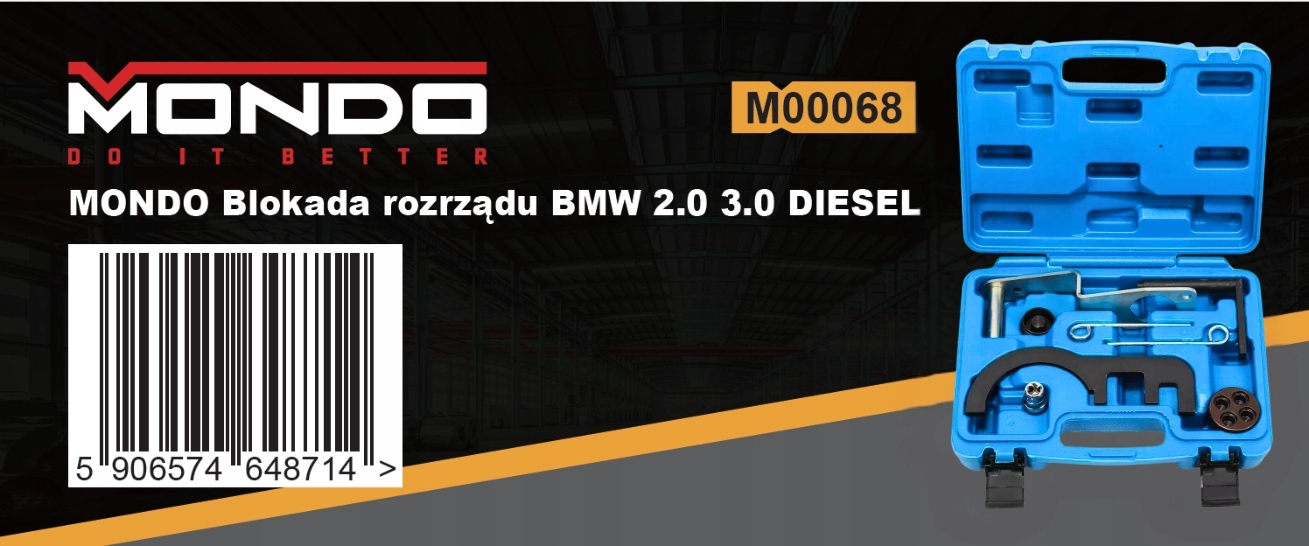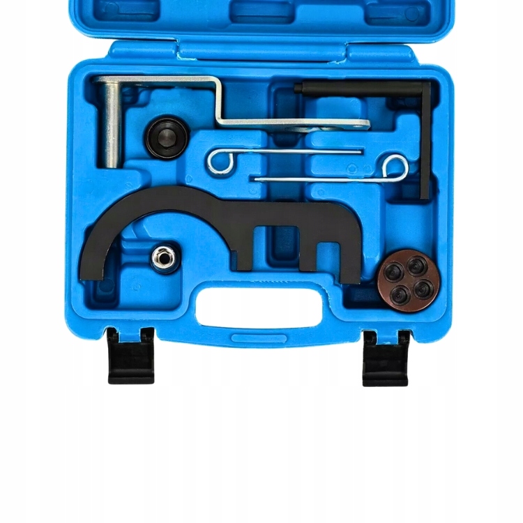 Набір призначений для налаштування розподільних валів в дизельних двигунах з ланцюговим приводом. У набір входить, серед іншого, блокування ТНВД, розподільного вала, колінчастого вала та блокування натягувача ланцюга ГРМ. Код двигуна 2.0 N47 і N47S (2007 - 2010) У комплект входить фіксатор розподільного вала з ручкою, штифт для фіксації маховика, гніздо 1/2" 10 мм, гніздо для повороту колінчастого вала і додатковий знімач насоса високого тиску.