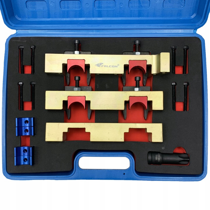Набір містить усі інструменти, необхідні для блокування розподільних валів під час заміни ланцюга приводу ГРМ або обслуговування та ремонту двигуна.