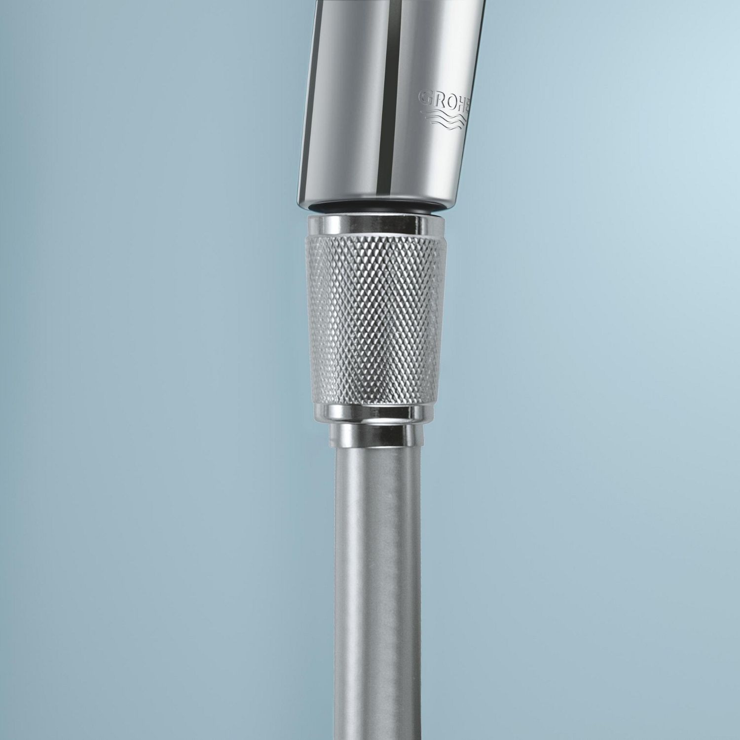 Завдяки обертовому ковпачку, виготовленому за технологією GROHE TwistStop, шланг не перекручується під час купання. Завдяки таким чином користування душем стає набагато приємнішим!
