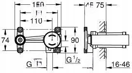 Для змішувача для умивальника на 2 отвори, вбудований в стіну, без елементів для монтажу, керамічний картридж GROHE SilkMove 35 мм, регульований обмежувач витрати, з обмежувачем температури, вилив можна розташувати зліва або права сторона, глибина монтажу від 45 до 75 мм, стійка до корозії латунь DR, монтажний пристрій, забезпечує водонепроникність конструкції стіни, що оточує передстінний елемент, з ущільненням