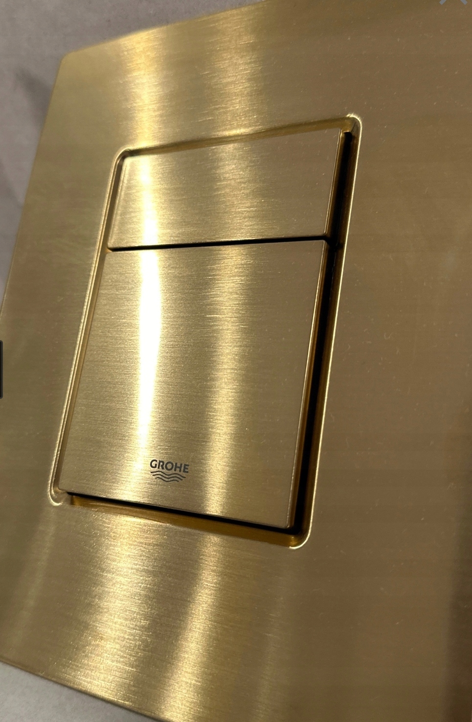- кнопка змиву з двох частин 38732GN0 GROHE SKATE COSMOPOLITAN BRUSHED COOL SUNRISE BRUSHED GOLD MATT, що відповідає аксесуарам із матового золота, розміри: 15,6 x 19,7 см