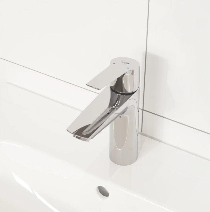 Одноважільний змішувач для умивальника Grohe Start стане ідеальним акцентом у вашій сучасній ванній кімнаті.