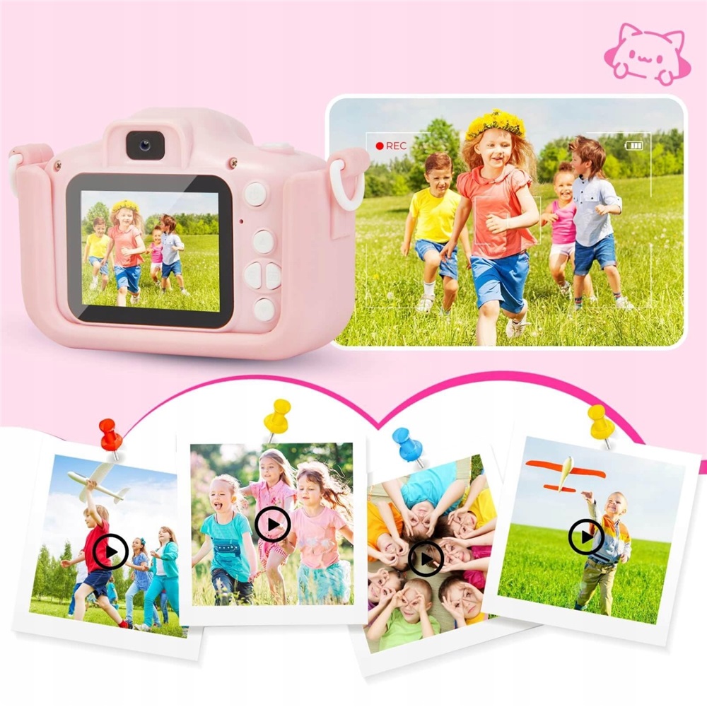 Цифрова міні -камера для дітей пропонує різні функції, такі як барвисті фотофільтри та багато фотографій. Діти можуть легко вибрати фон та фоторамку на камері та захоплювати унікальні моменти.