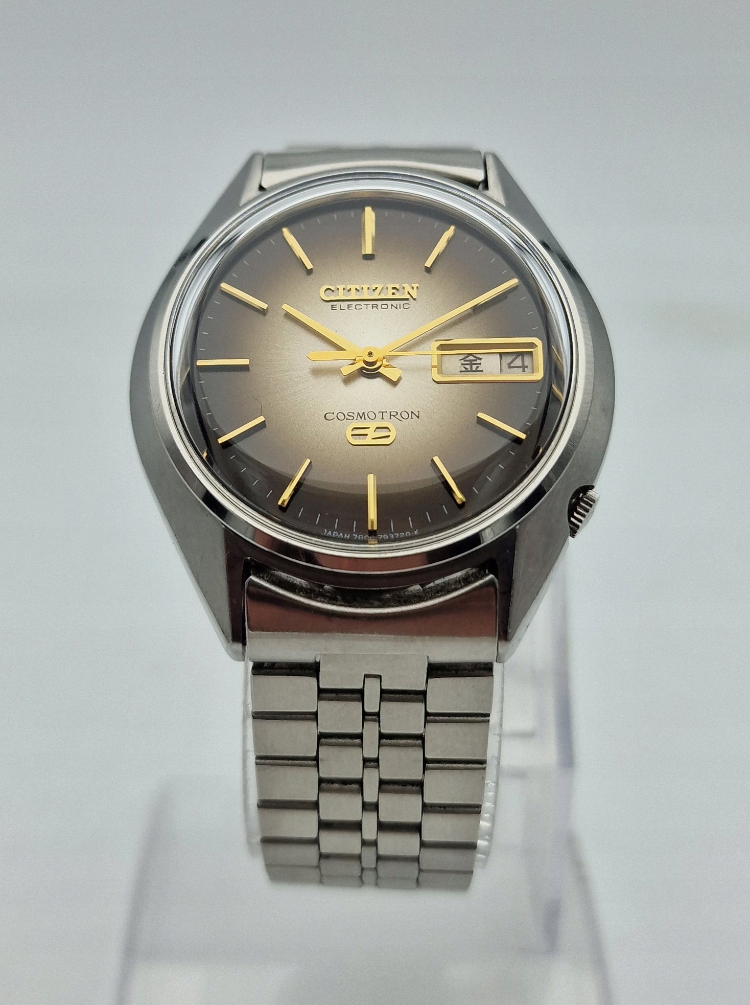 Цього разу я повинен запропонувати ознаменний годинник для цінителів та зачаровує. Це класична модель електронного Cosmotron Watch Citizen від 70 -х у сталевому конверті. Годинник на хорошій і пунктуальній прогулянці. Майже в ідеальному стані ...