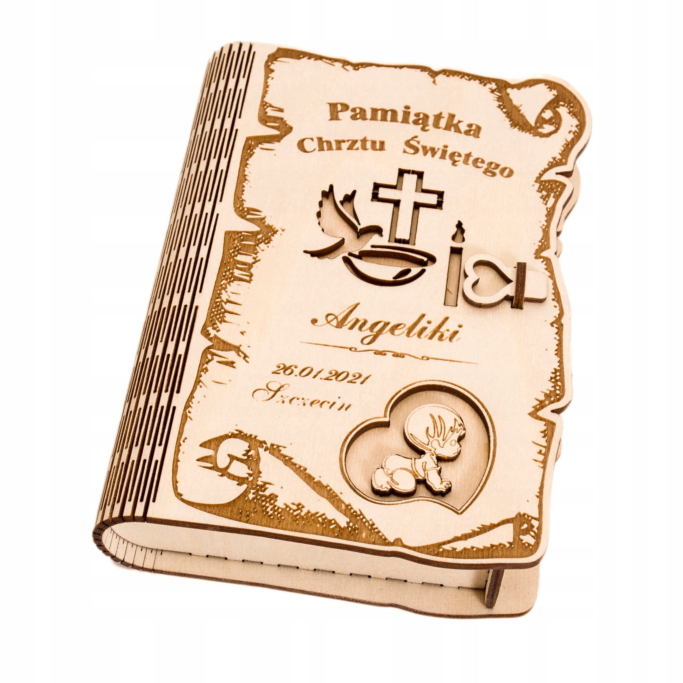 Скринька з індивідуальним гравіюванням для грошей у формі книги в подарунок на пам'ять на день хрещення