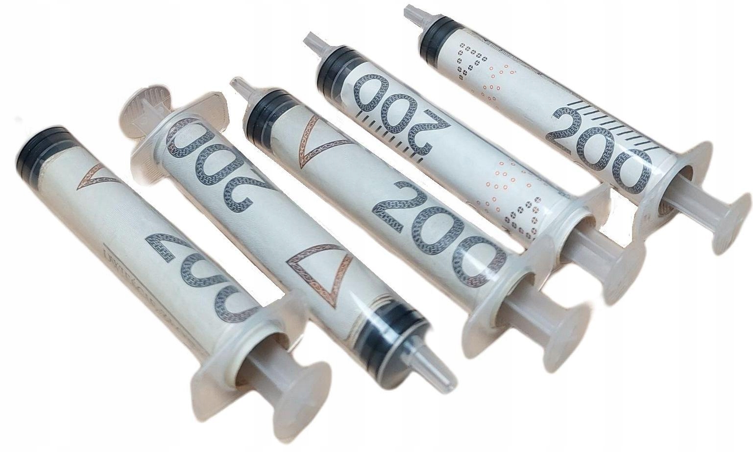 Кожен шприц вміщує одну банкноту, яку також можна загорнути зовнішньою стороною та закріпити гумкою (не входить до комплекту)