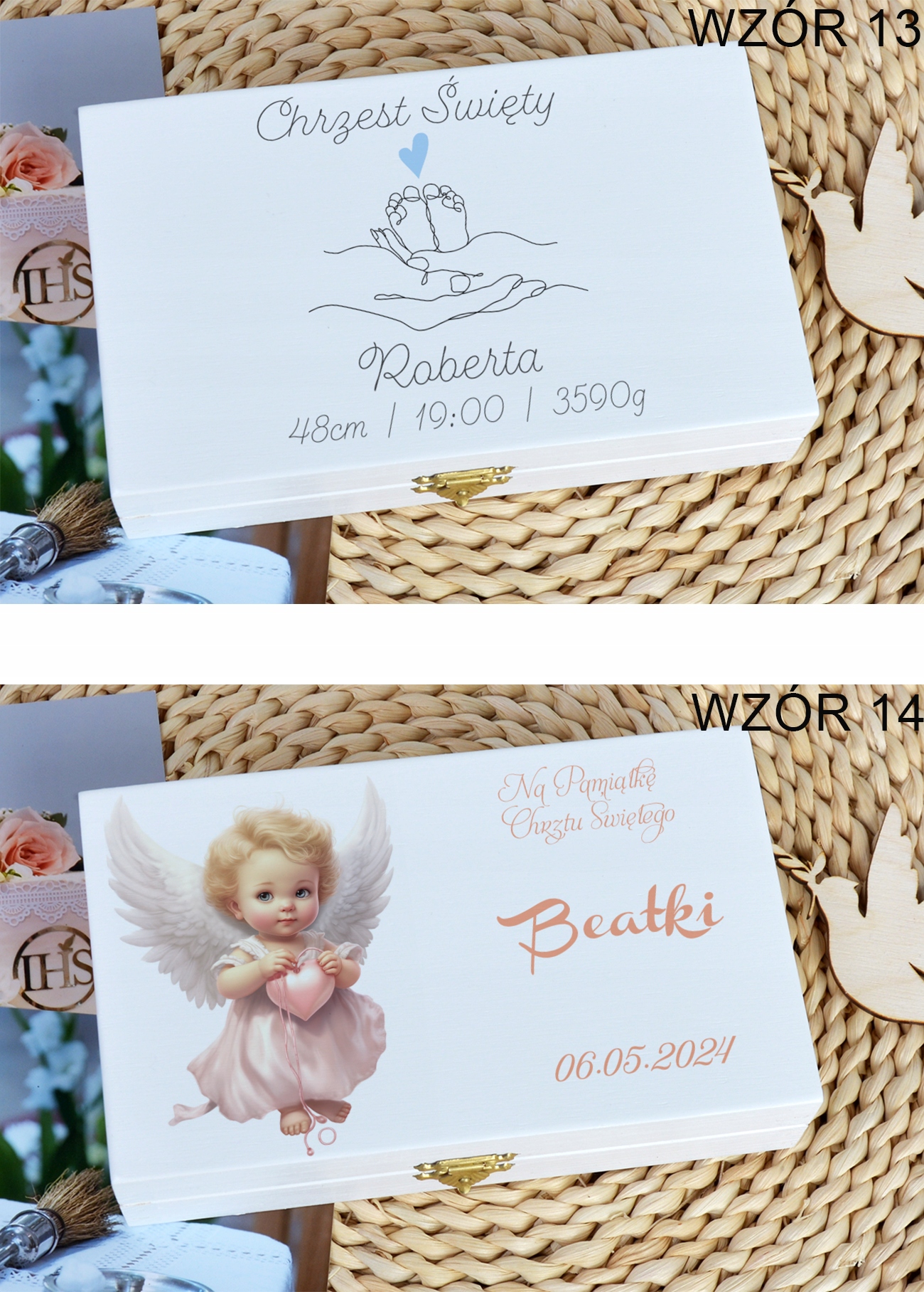 Грошові коробки Біле хрещення День народження УФ -друк