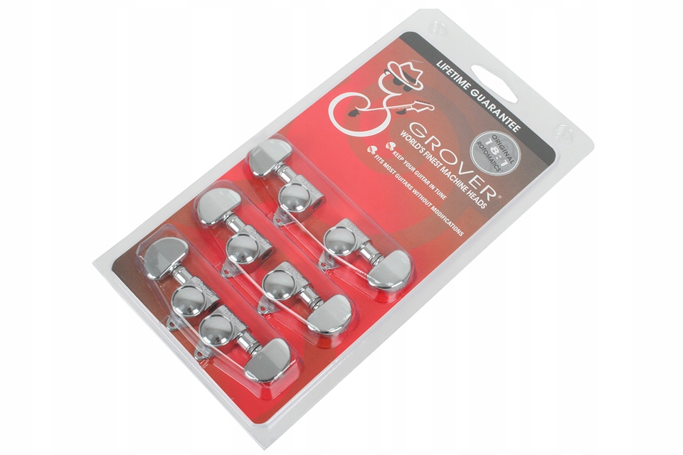 Набір оригінальних, хромованих гітарних клавіш Grover 102-18c. Встановлений у системі 3+3, коробка передач 18: 1. Гровер Рідс належить до одного з найкращих і найцінніших у світі. Якість виготовлення в поєднанні з винятковою естетикою змушує гітаристів досягати їх майже з віку.