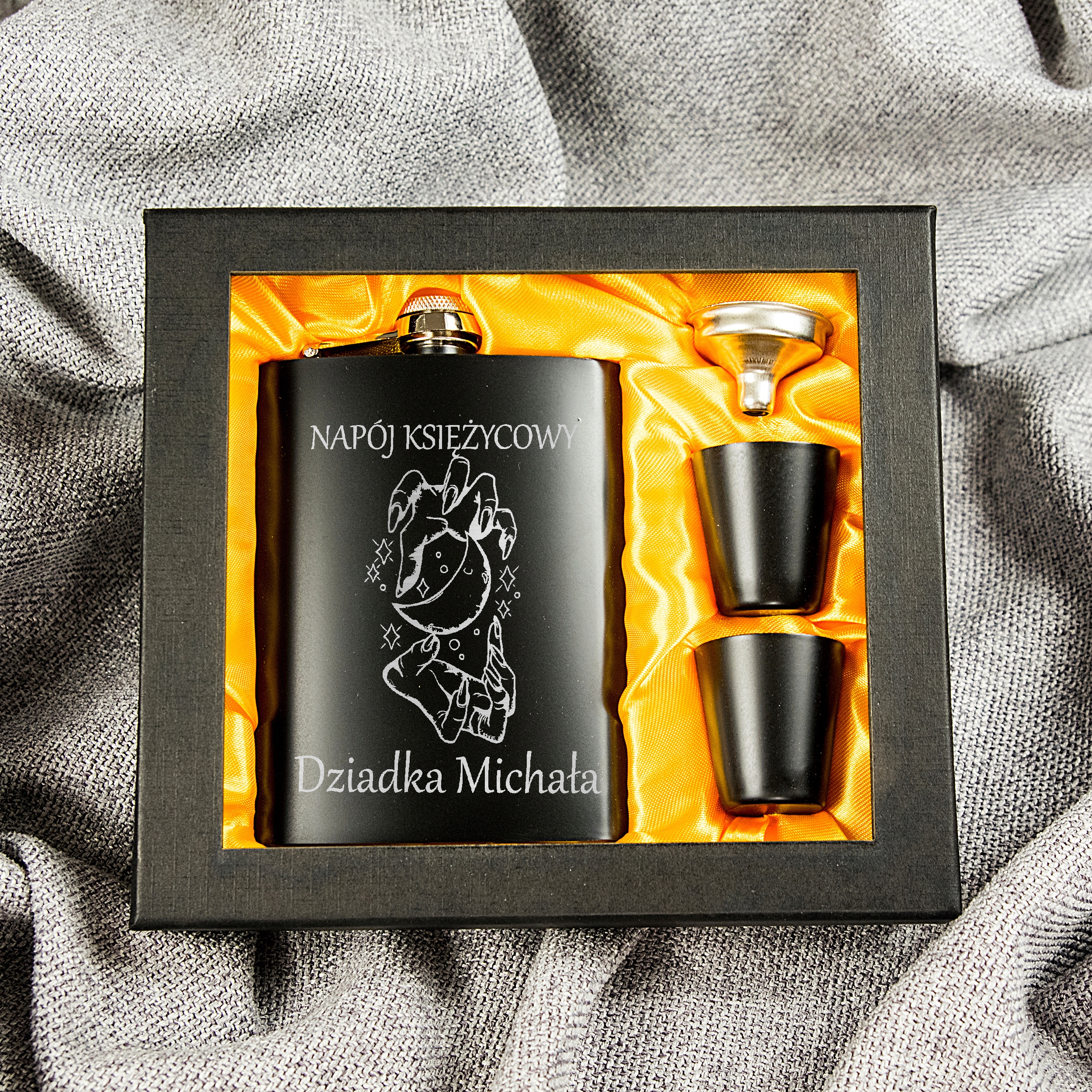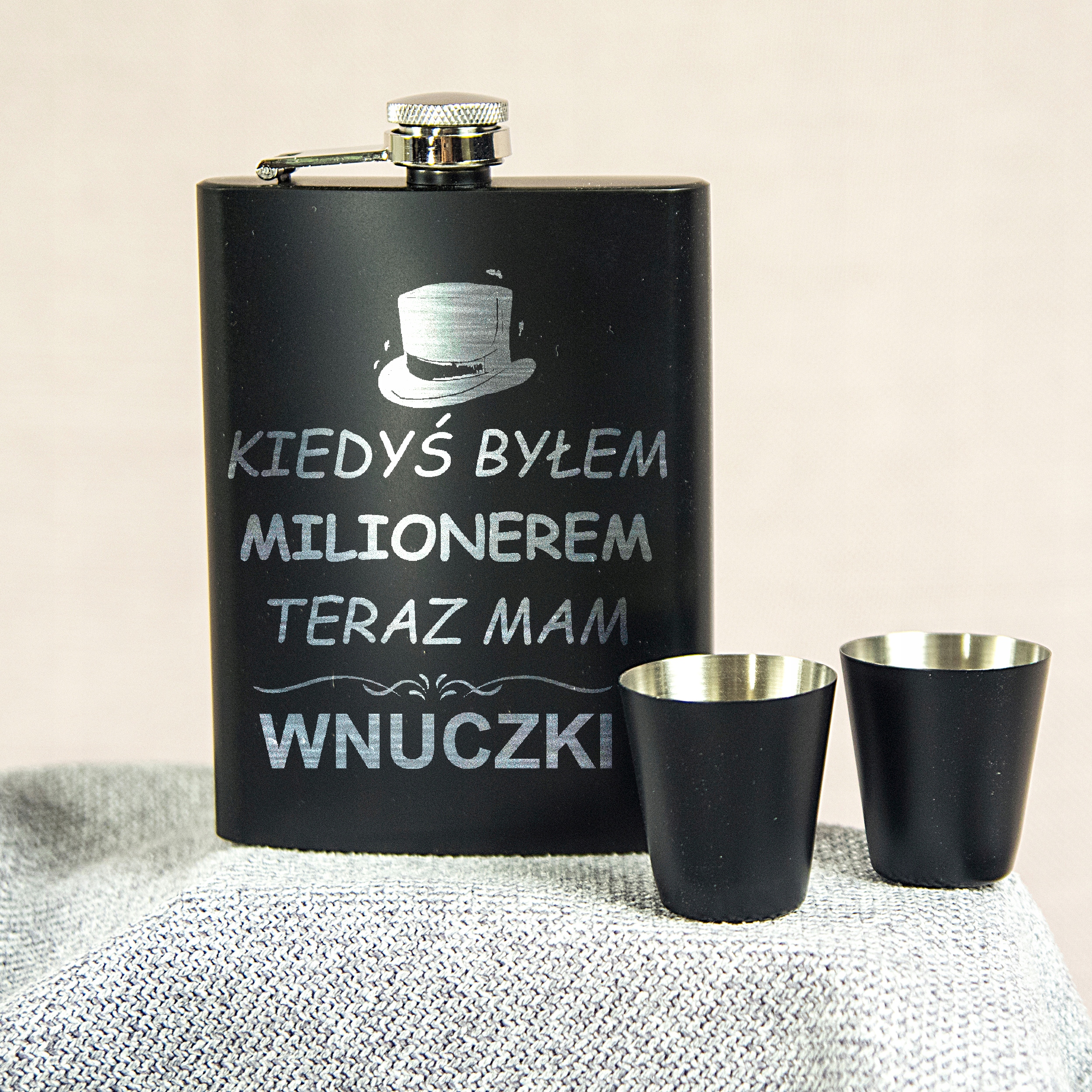 СТАЛЕВА ФЛАГА 240 МЛ З ГРАВІЮВАННЯМ + СТАКАНКИ ТА ВОРОНКА
