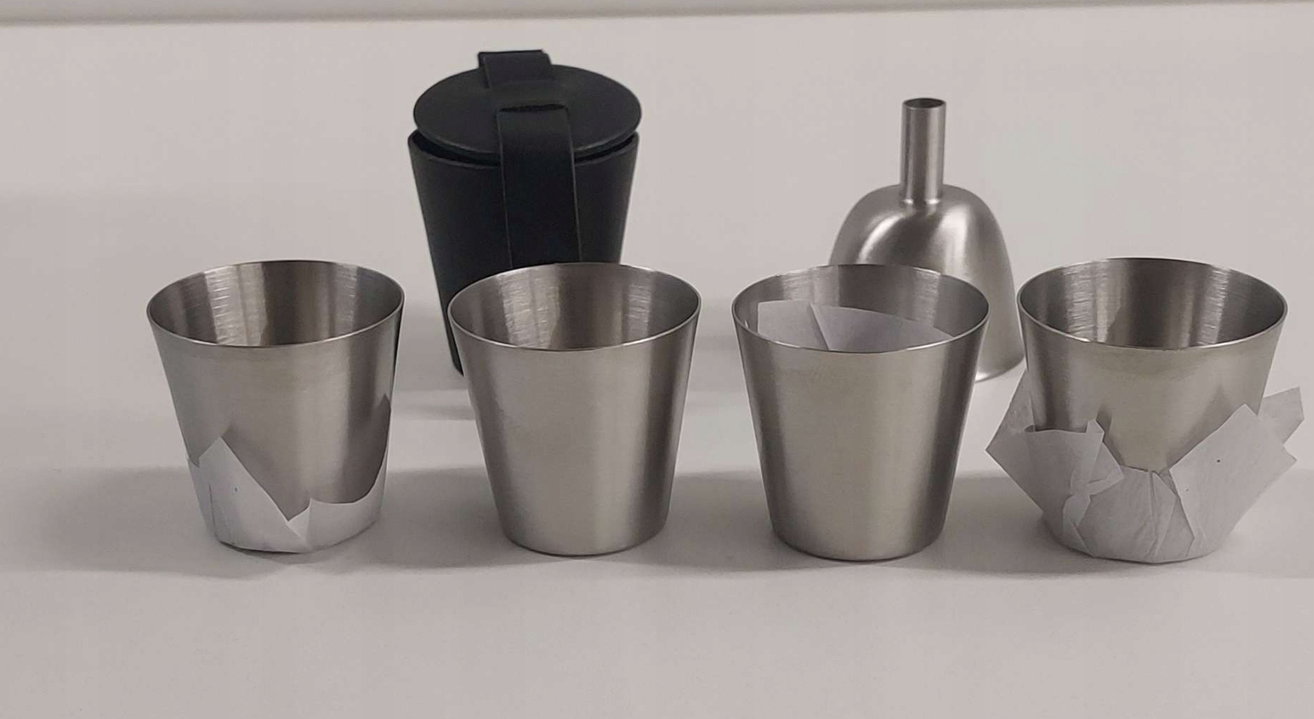 Складна кришка підключена до грудей, тому ви не загубитесь. Стампер, щоб насолодитися горілкою, можна укладати у шкіряному корпусі