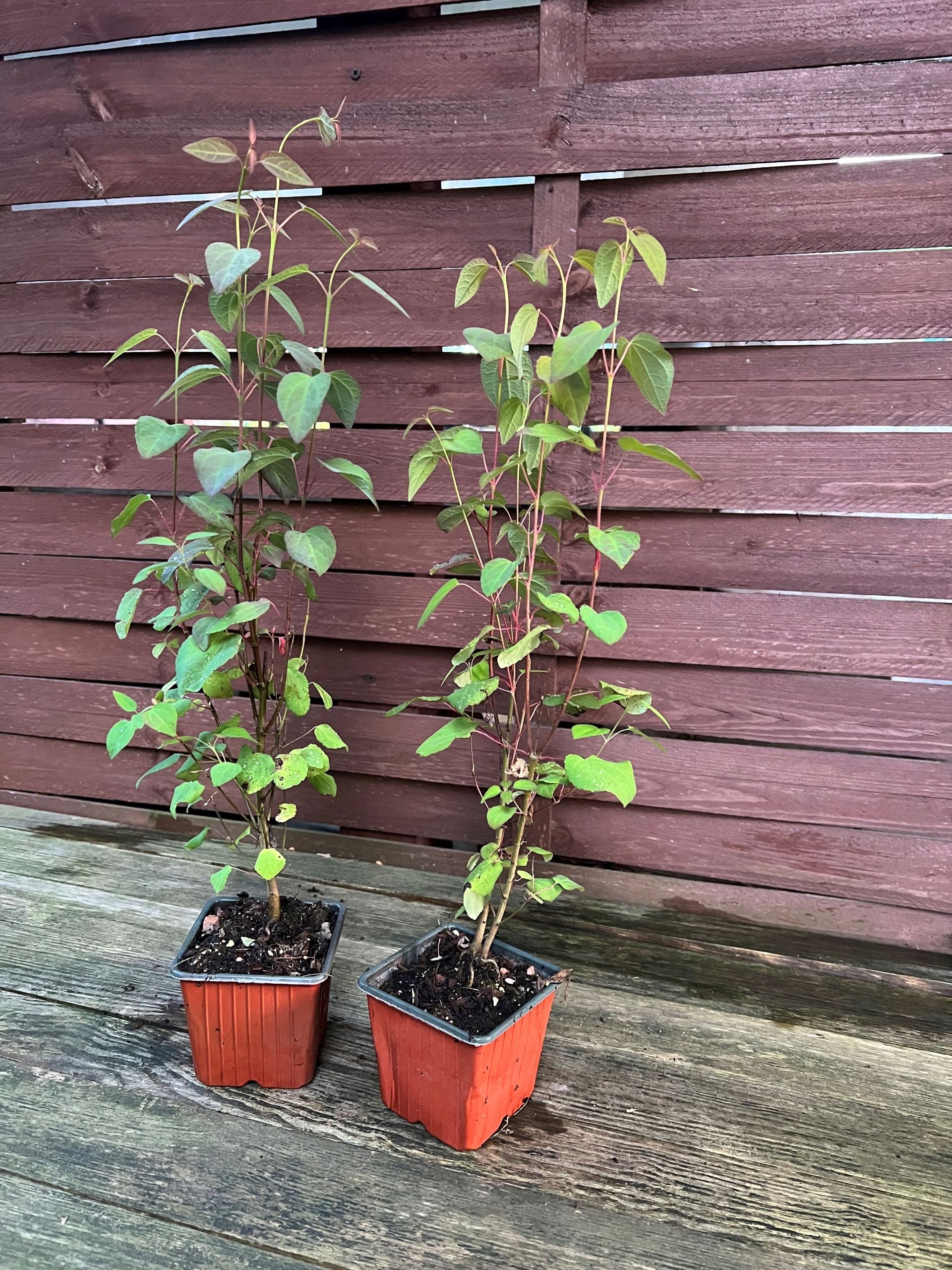 саджанці в горщиках, добре вкорінені в торфу, що значною мірою сприяє подальшому росту після посадки.