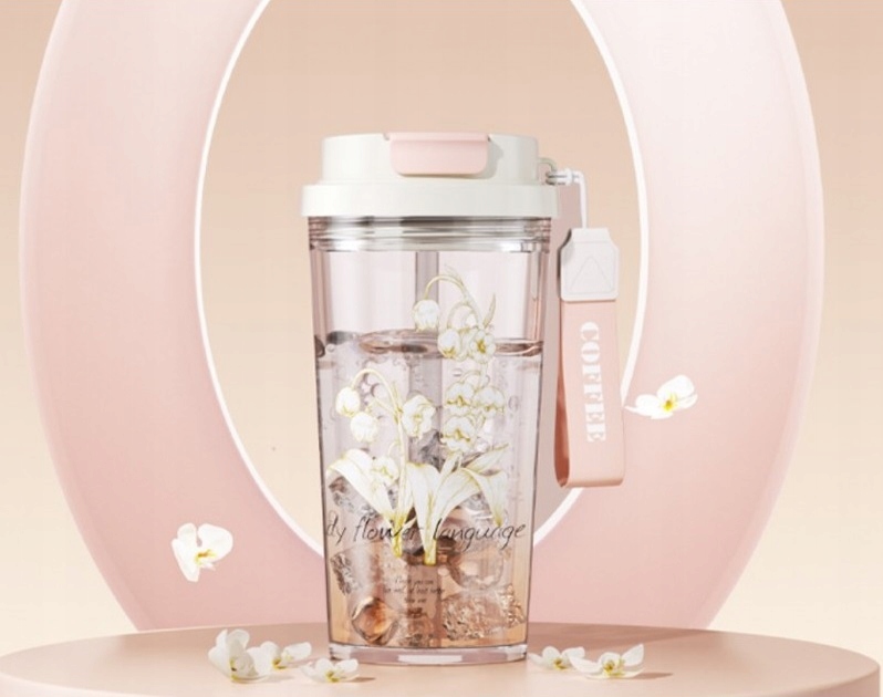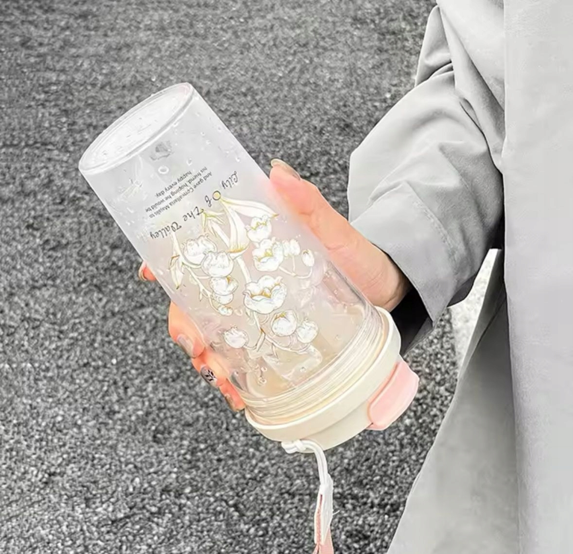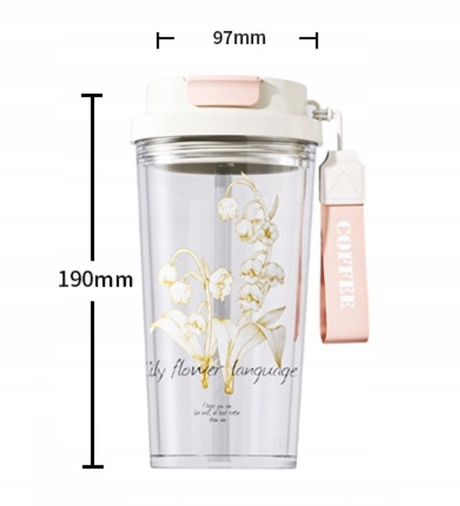 КРУЖОК, ПЛЯШКА ДЛЯ ВОДИ З СОЛОМИНКОЮ ТА НИСИКОМ, ПРОЗОРА КОНВАЛІЯ, ВЕЛИКИЙ