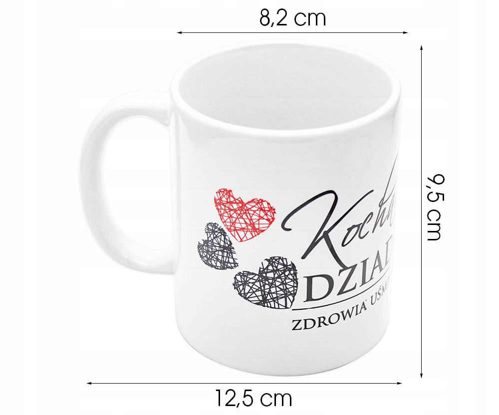 Кухоль з високоякісної кераміки з особливим присвятою - це продукт, завдяки якому ви легко покличете посмішку на обличчя свого дідуся. Елегантний і неповторний зовнішній вигляд з принтом з особливими побажаннями - Коханому Дідусеві, Здоров'я, Посмішок, Радості. Зручна ручка чашки дозволяє надійно тримати її навіть з гарячим вмістом всередині. Приємний візерунок із чорними та червоними сердечками завжди нагадуватиме вам про вашу любов до іншої людини.
