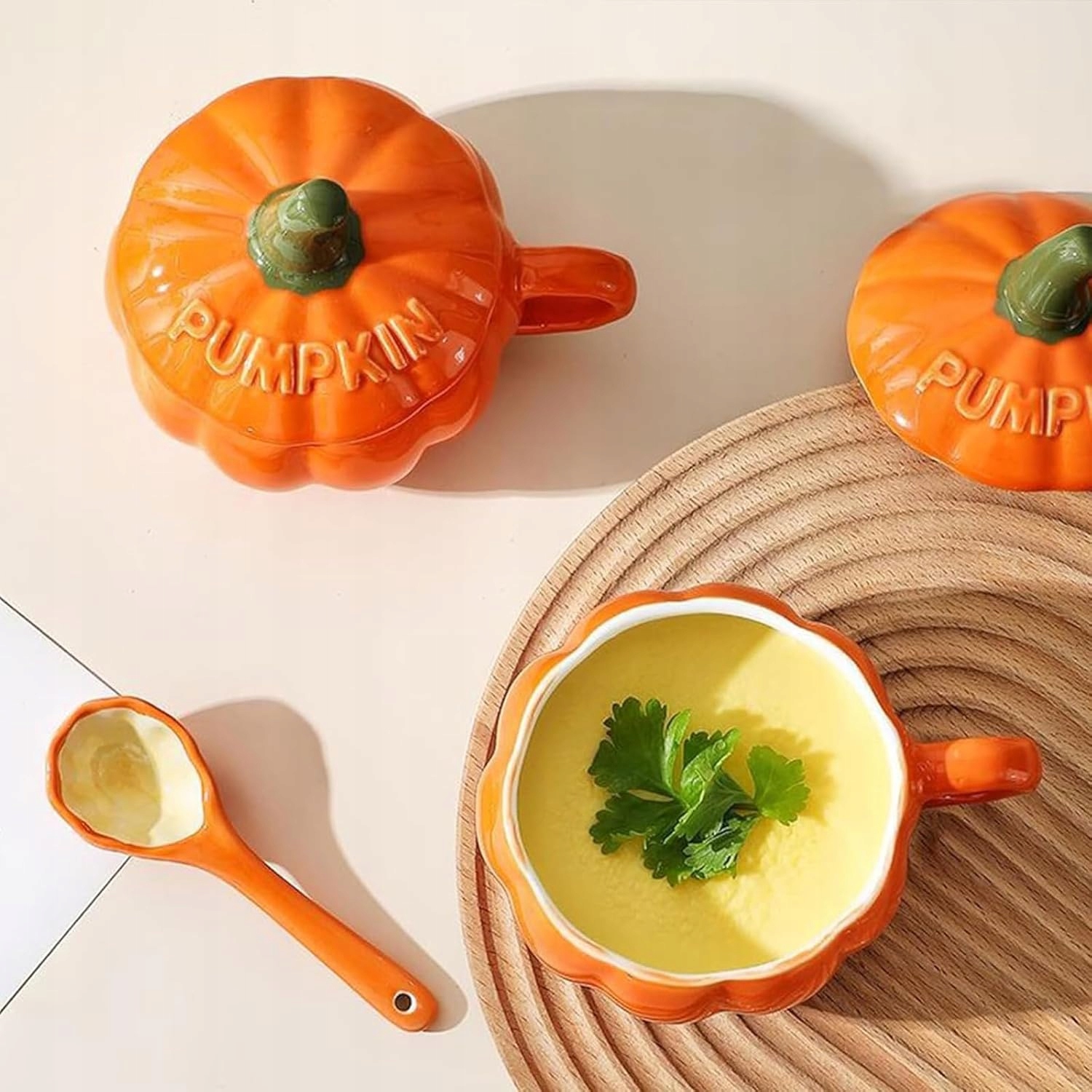 Керамічна гарбузова чашка Maxspace 250 мл із кришкою та ложкою — ідеальна для Хеллоуїна/осені