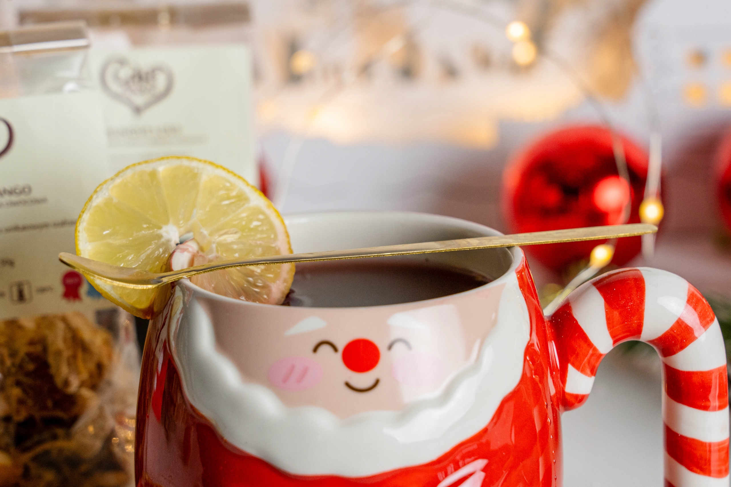 ✴️Кухоль має візерунок Санта Клауса, кришку, що імітує його капелюх, і ручку у формі цукеркової тростини.