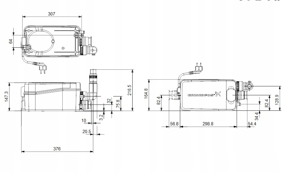 Grundfos агрегат для перекачування стічних вод з душу та раковини Sololift2 D-2 0,28 кВт Q = 105 л/ хв 240 В