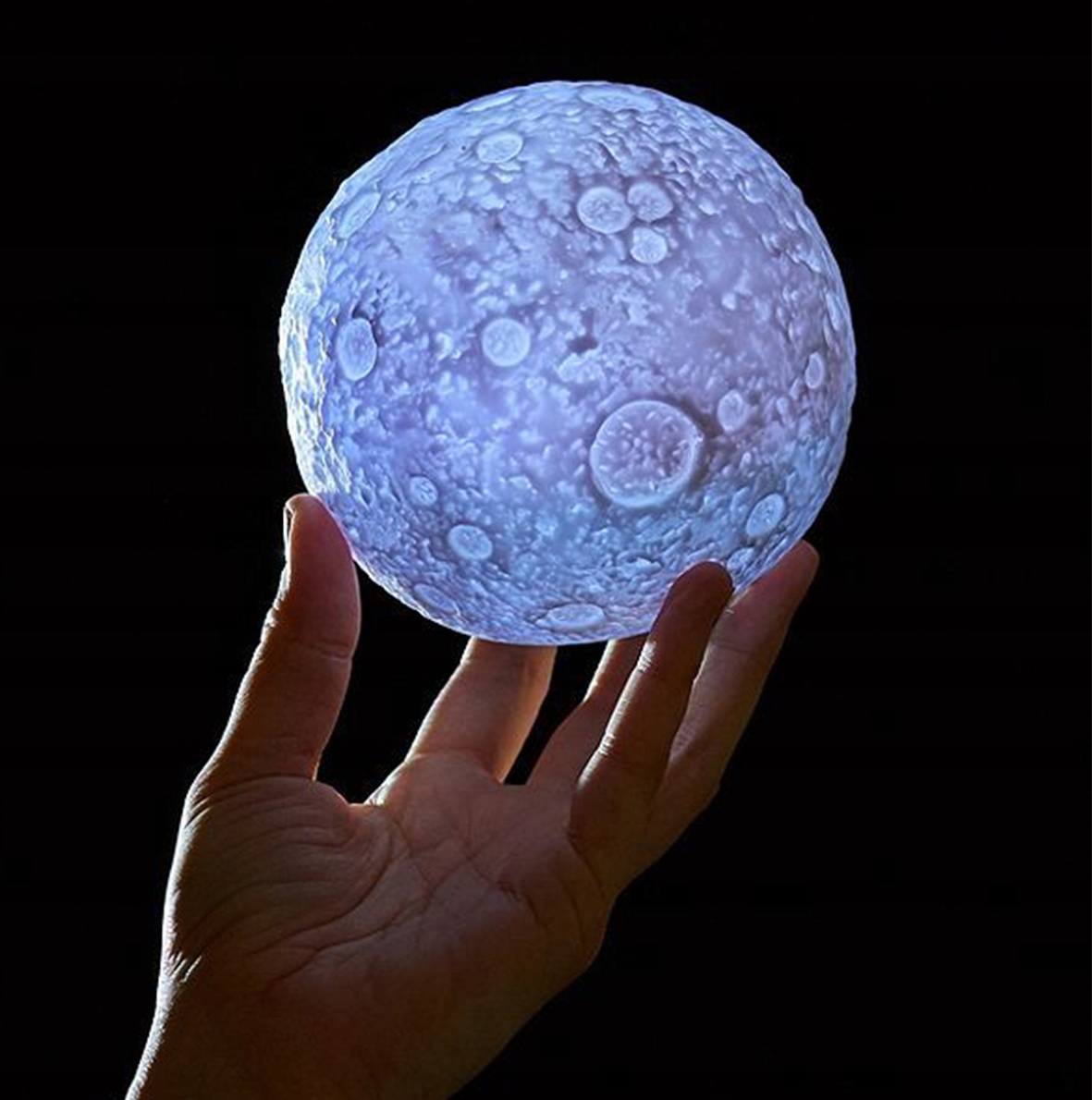 Лампа виготовлена за технологією 3D-друку з нанесенням шарів для створення ефекту місяця. Лампа виготовлена з високоякісного пластику.