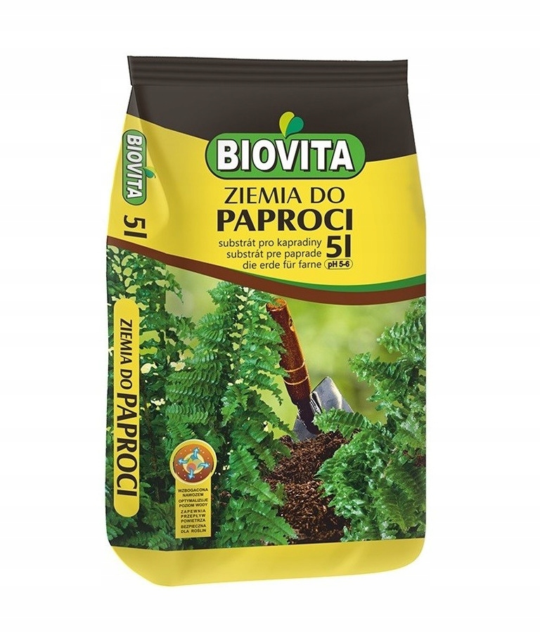 Грунт для папороті БІОВІТА 5л - багатокомпонентний добривний субстрат, призначений для вирощування папоротей і папоротей.