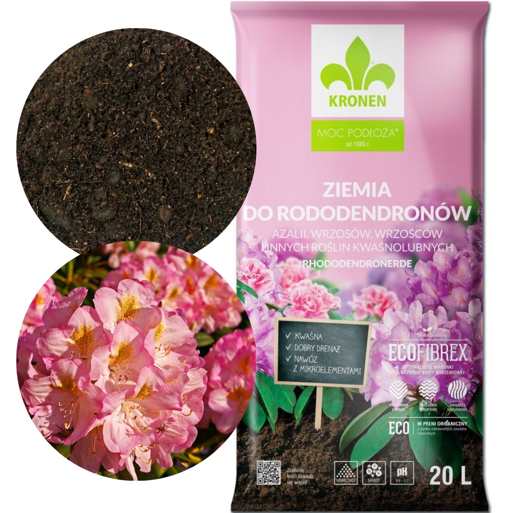 Ґрунт KRONEN® для рододендронів, азалій, гортензій та вересу призначений для посадки та пересадки кислотолюбивих рослин (вимагають низького pH), з низькими потребами в поживних речовинах, таких як: рододендрони, азалії, вереси. , чорниці, садової папороті, блакитної гортензії та карликових хвойних чагарників.