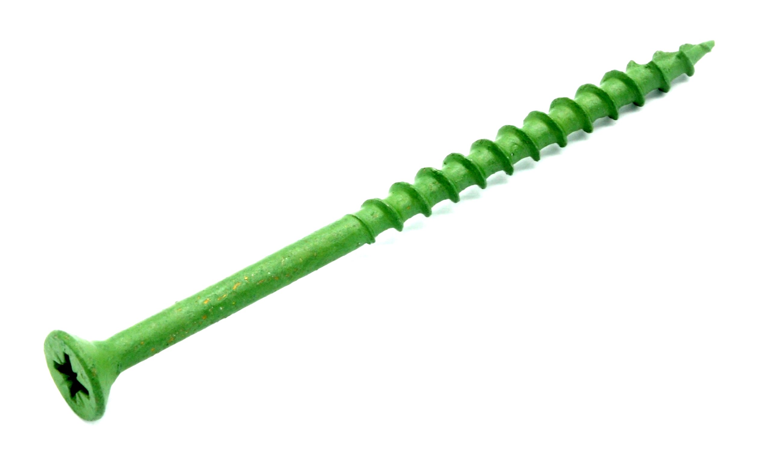 Опис: гвинти виготовлені зі сталі, покритої високоякісним органічним покриттям, завдяки якому вони мають антикорозійний захист навіть у важких зовнішніх умови. Гвинт має спеціальну свердлильну фрезу, яка скорочує час свердління, грубу різьбу для дерева та головку, яка дозволяє гвинту бути врівень із поверхнею.