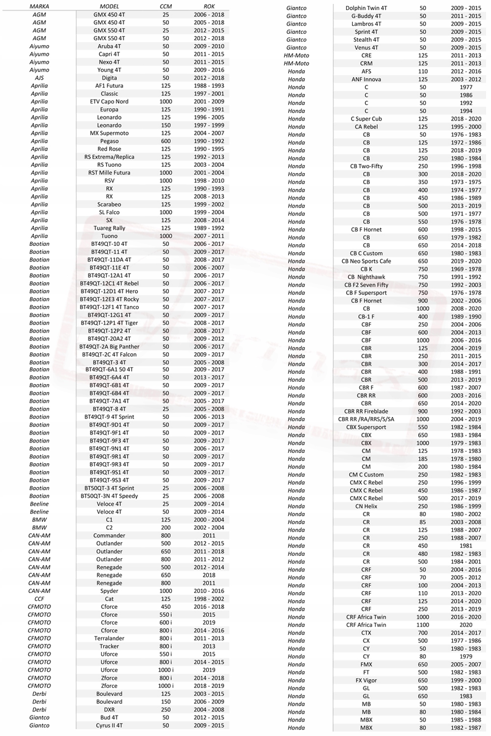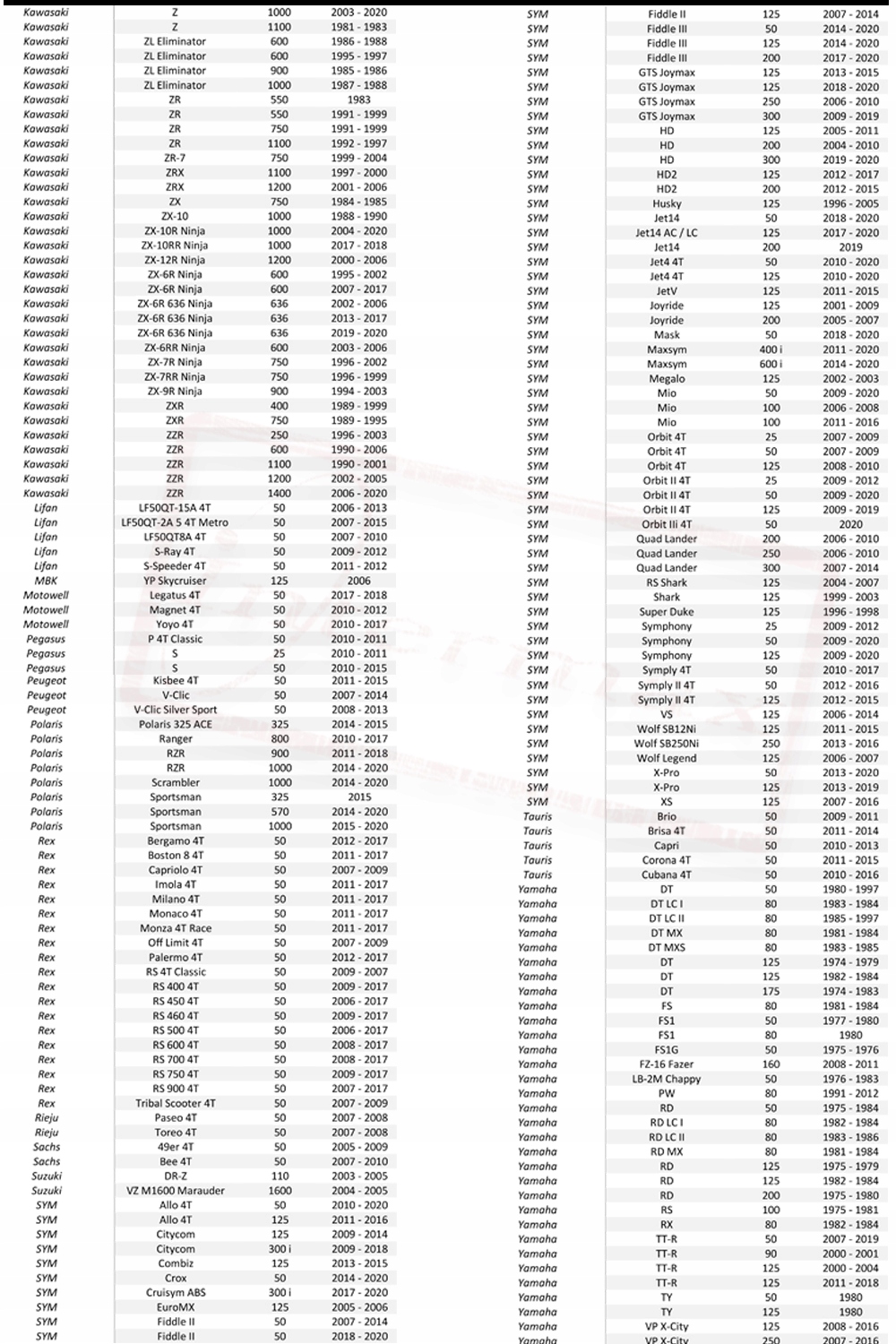 ОСНОВНЕ ЗАСТОСУВАННЯ ГВИНТА AGM, APRILIA, BAOTIAN, BMW, CAN-AM, CFMOTO, DERBI, GIANTCO, HONDA АВТОМОБІЛІ , HUSABERG, KAWASAKI, LIFAN, MOTOWELL, PEGASUS, PEUGEOT, POLARIS, REX, RIEJU, SACHS, SUZUKI, SYM, YAMAHA